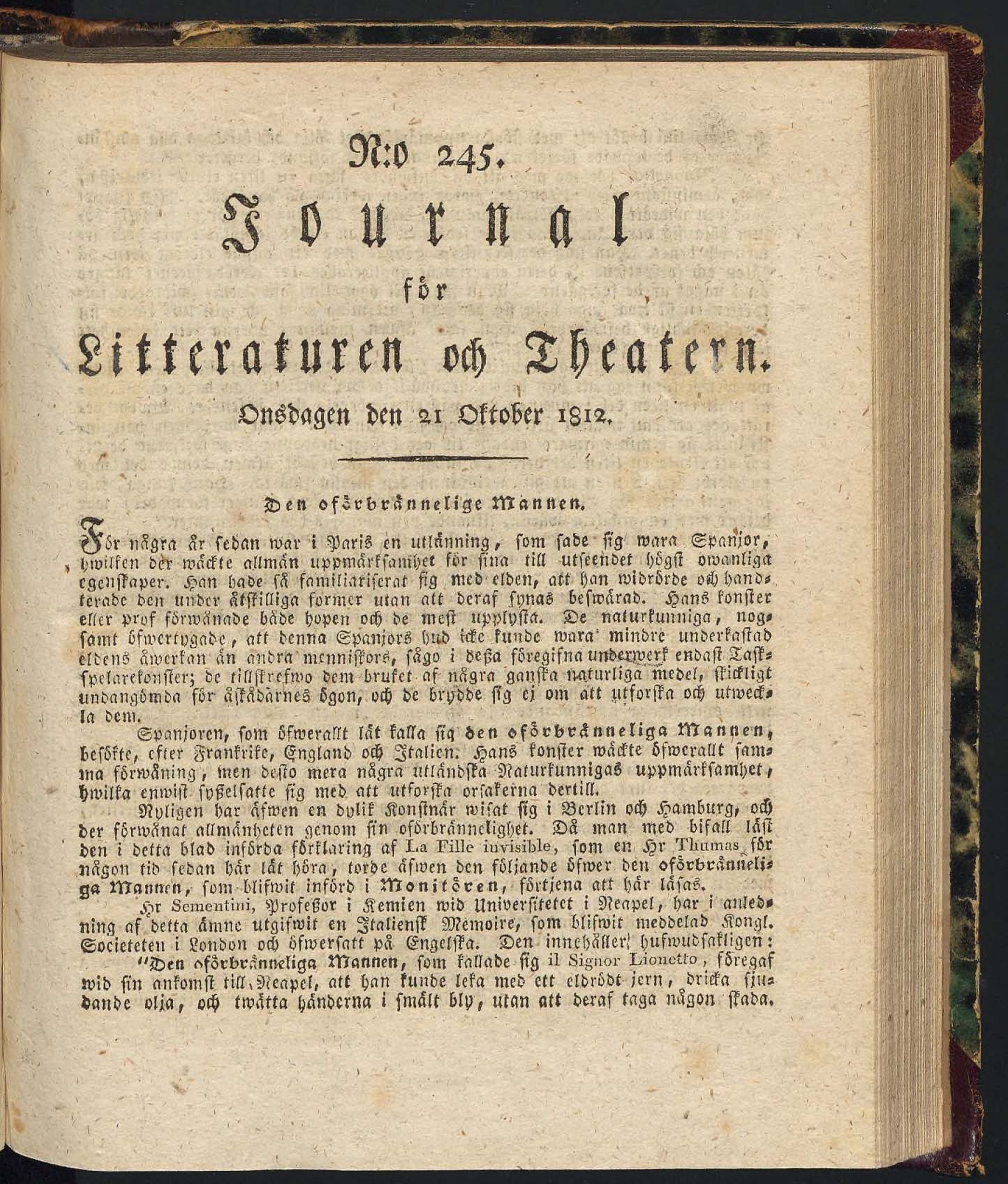 . «Den oförbränneliga Manner« som kallade sig il sig-not- Lioucttm föregaf