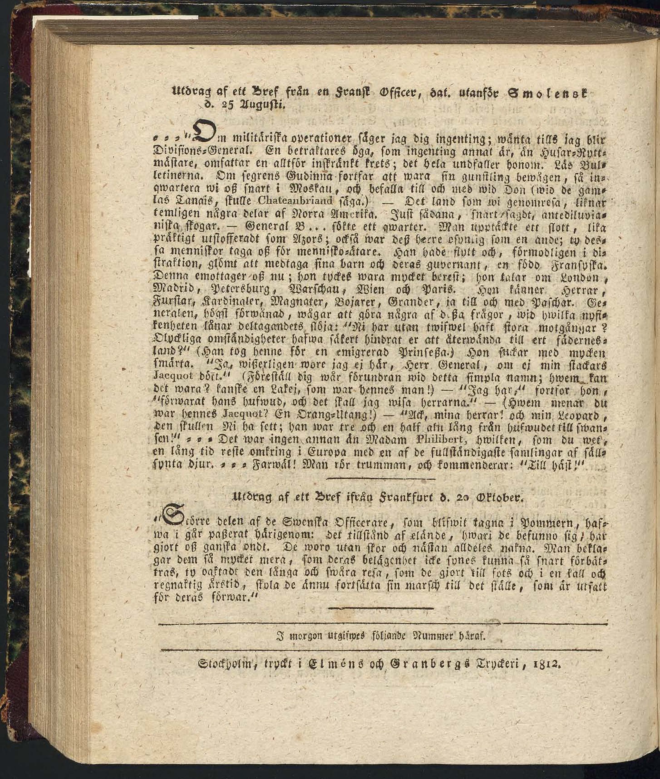 Utdrag af ett Bref fan en Franss- Ofsicer, dats utanför S m o len sk-