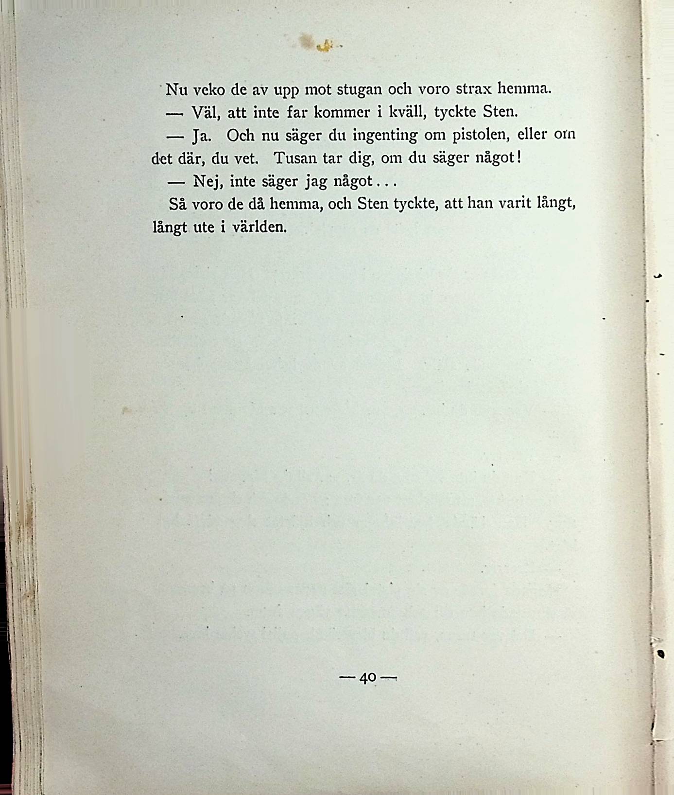 Så voro de då hemma, och Sten tyckte, att han varit långt,