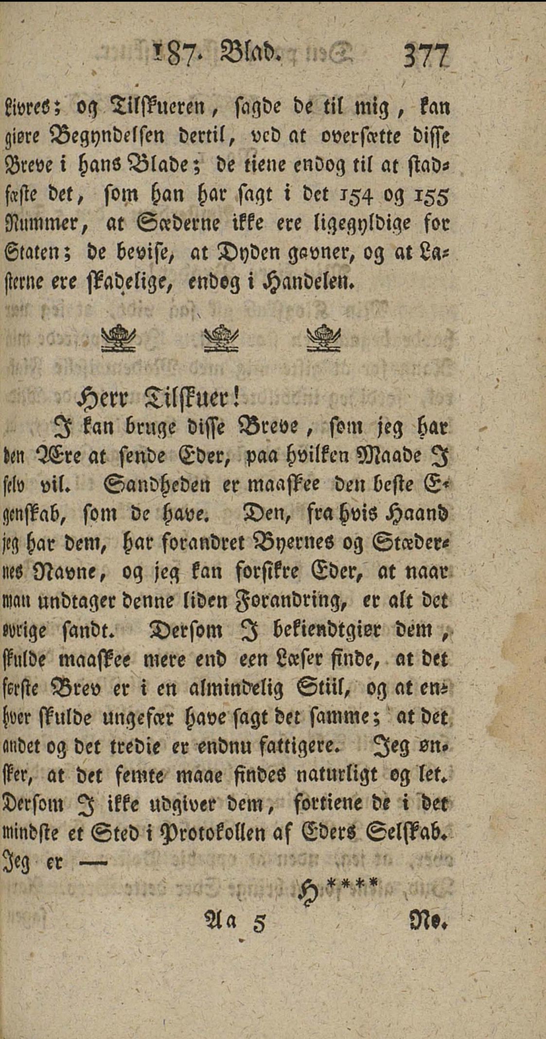 - Project Runeberg -  Sneedorffs samtlige Skrivter / Fierde Bind. Sneedorffs patriotiske Tilskuer /