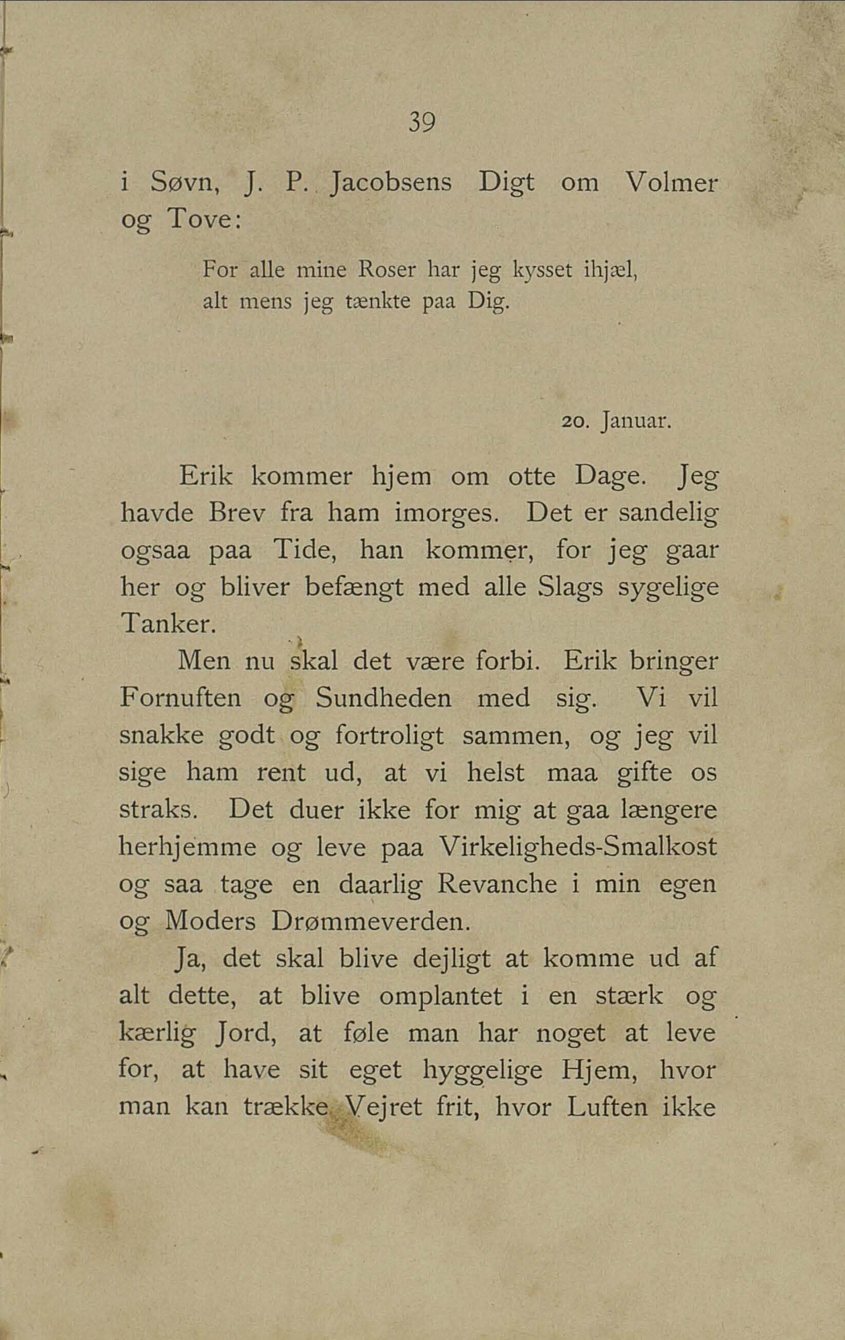 i Søvn, J. P. Jacobsens Digt om Volmer