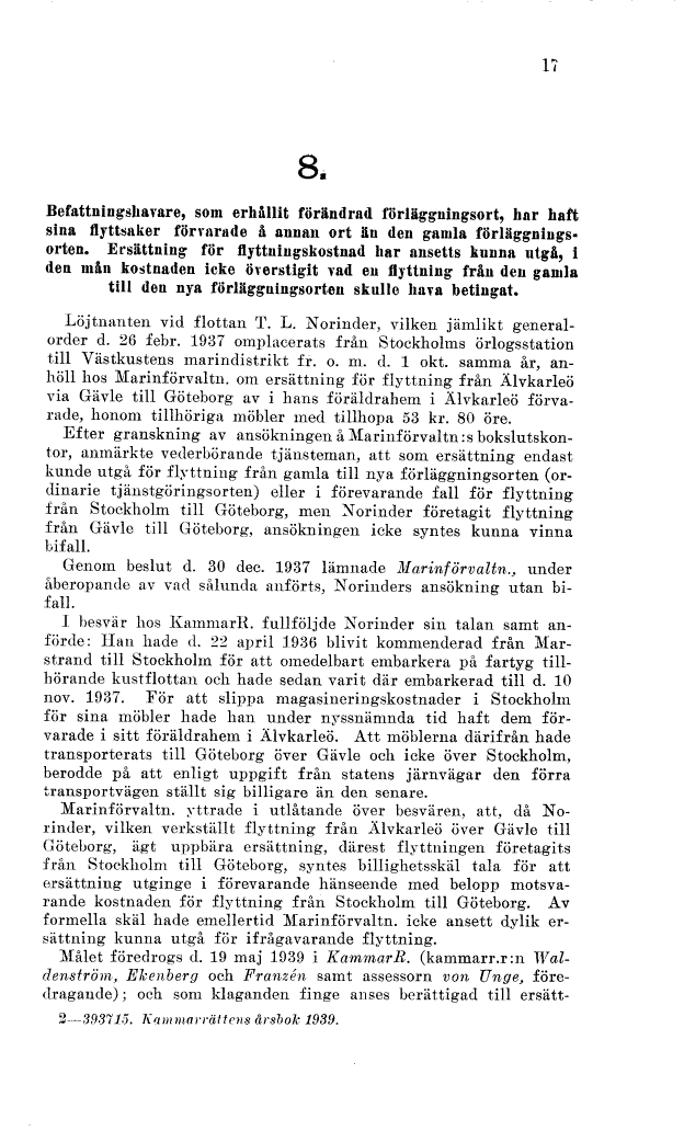 Målet föredrogs d. 19 maj 1939 i KammarR. (kammarr.r:n