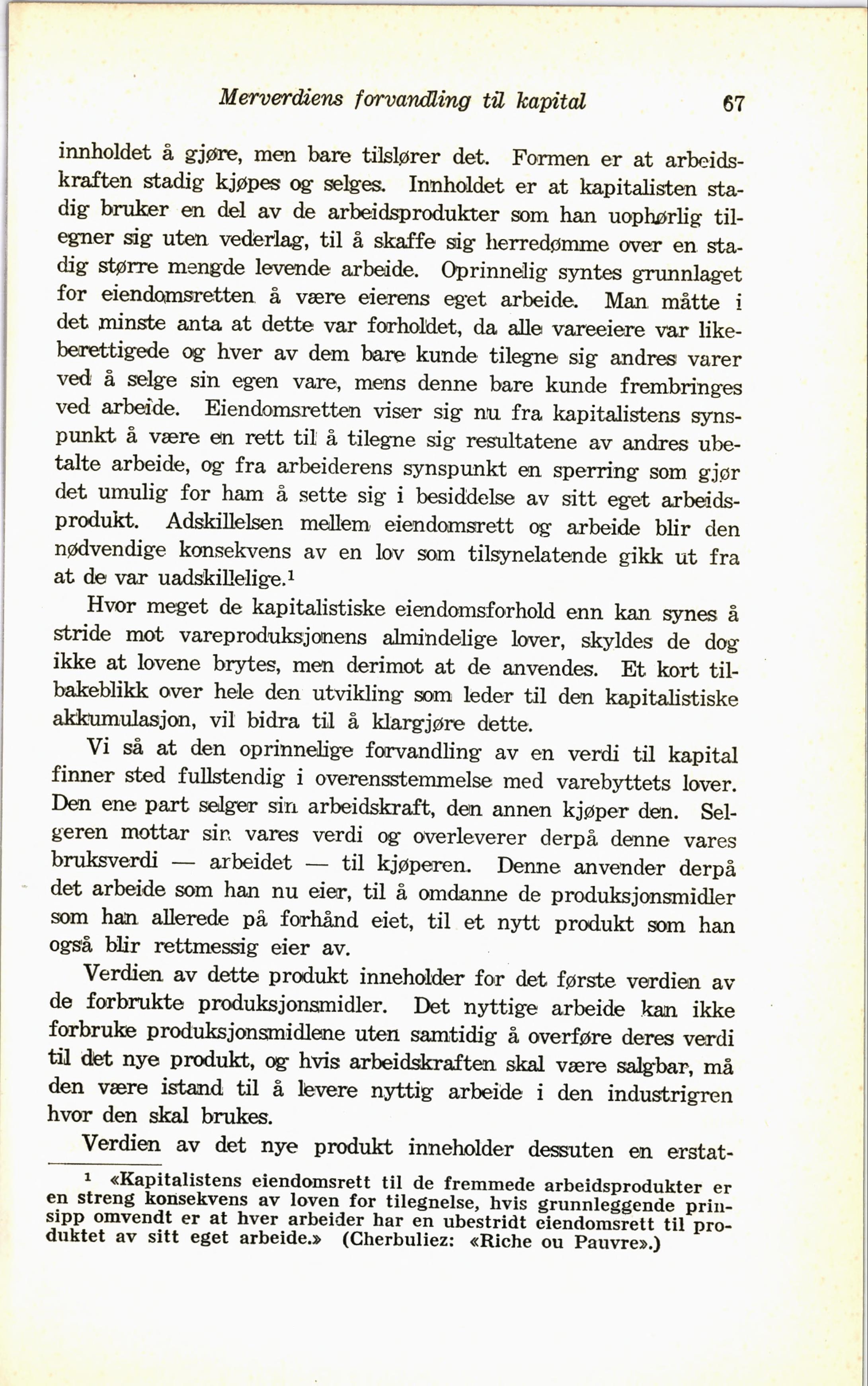1 «Kapitalistens eiendomsrett til de fremmede arbeidsprodukter er