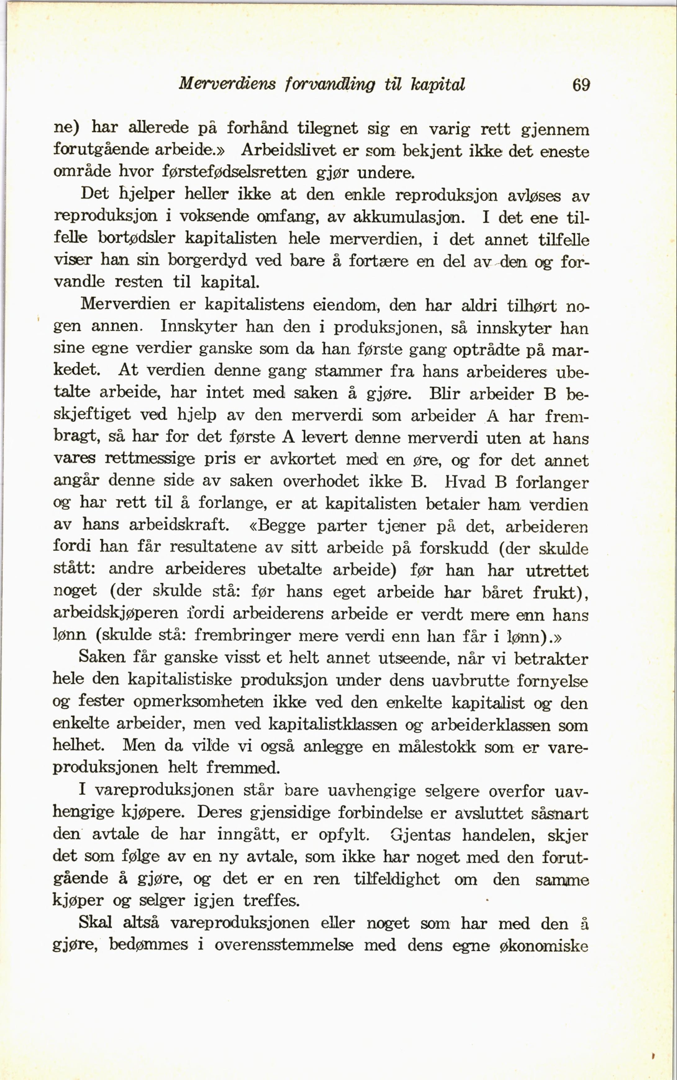 Full resolution (JPEG) - On this page / på denna sida - 7. Kapitalens akkumulasjonsprosess - 22. Merverdiens forvandling til kapital - 1. Kapitalistisk reproduksjonsprosess i voksende målestokk. — Vareproduksjonens eiendomslover slår om til lover for kapitalistisk tilegnelse av produktene