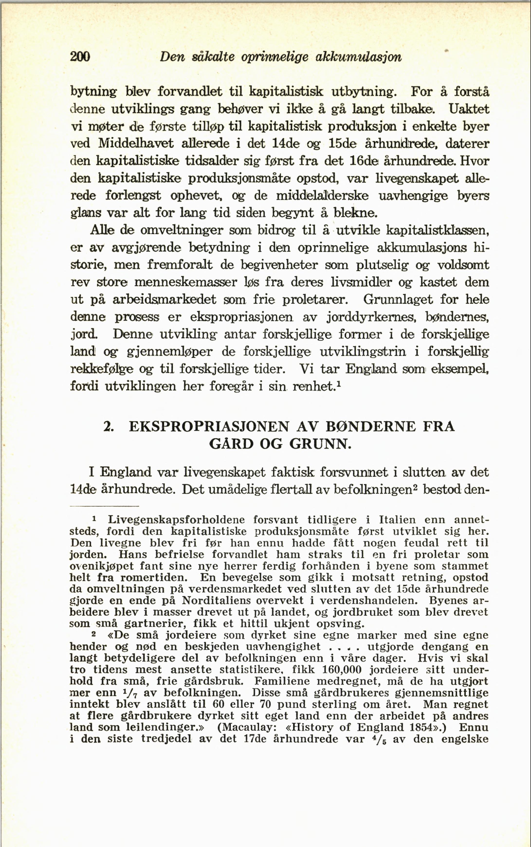 200 Den såkalte oprinnelige akkumulasjon