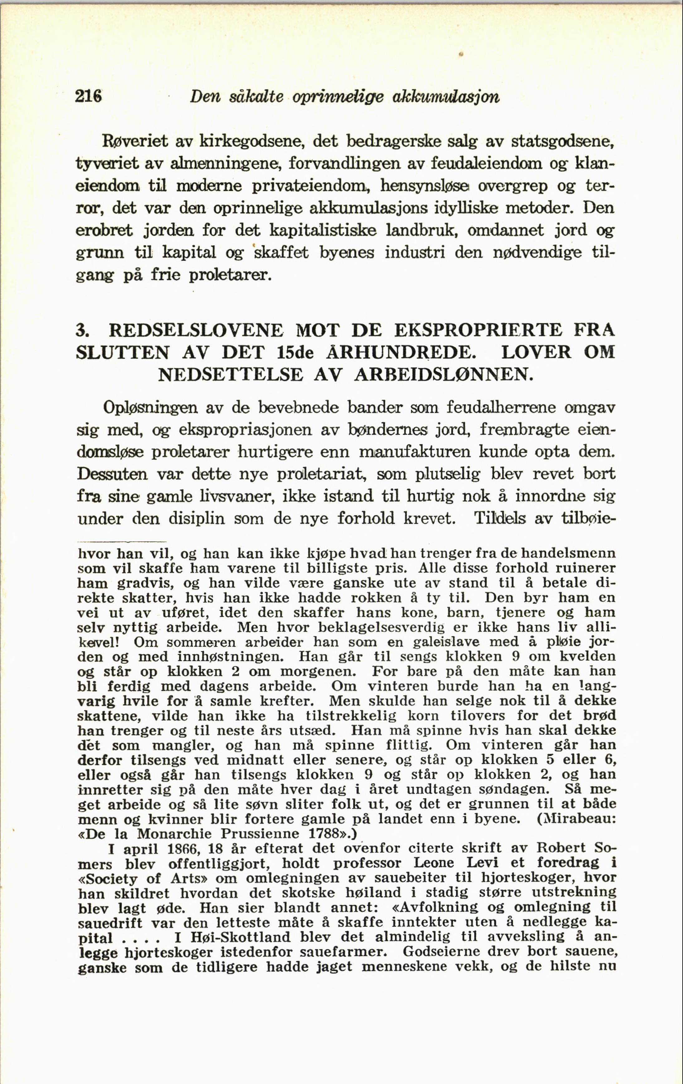 Full resolution (JPEG) - On this page / på denna sida - 7. Kapitalens akkumulasjonsprosess - 24. Den såkalte oprinnelige akkumulasjon - 2. Ekspropriasjonen av bønderne fra gård og grunn - 3. Redselslovene mot de eksproprierte fra slutten av det 15de århundrede. Lover om nedsettelse av arbeidslønnen