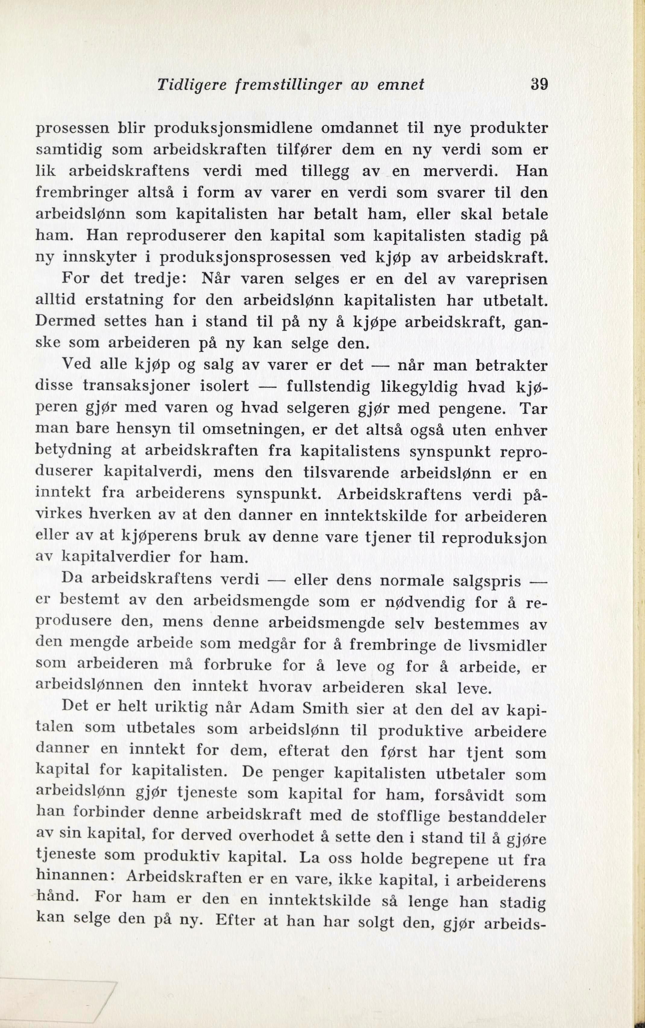lik arbeidskraftens verdi med tillegg av en merverdi. Han