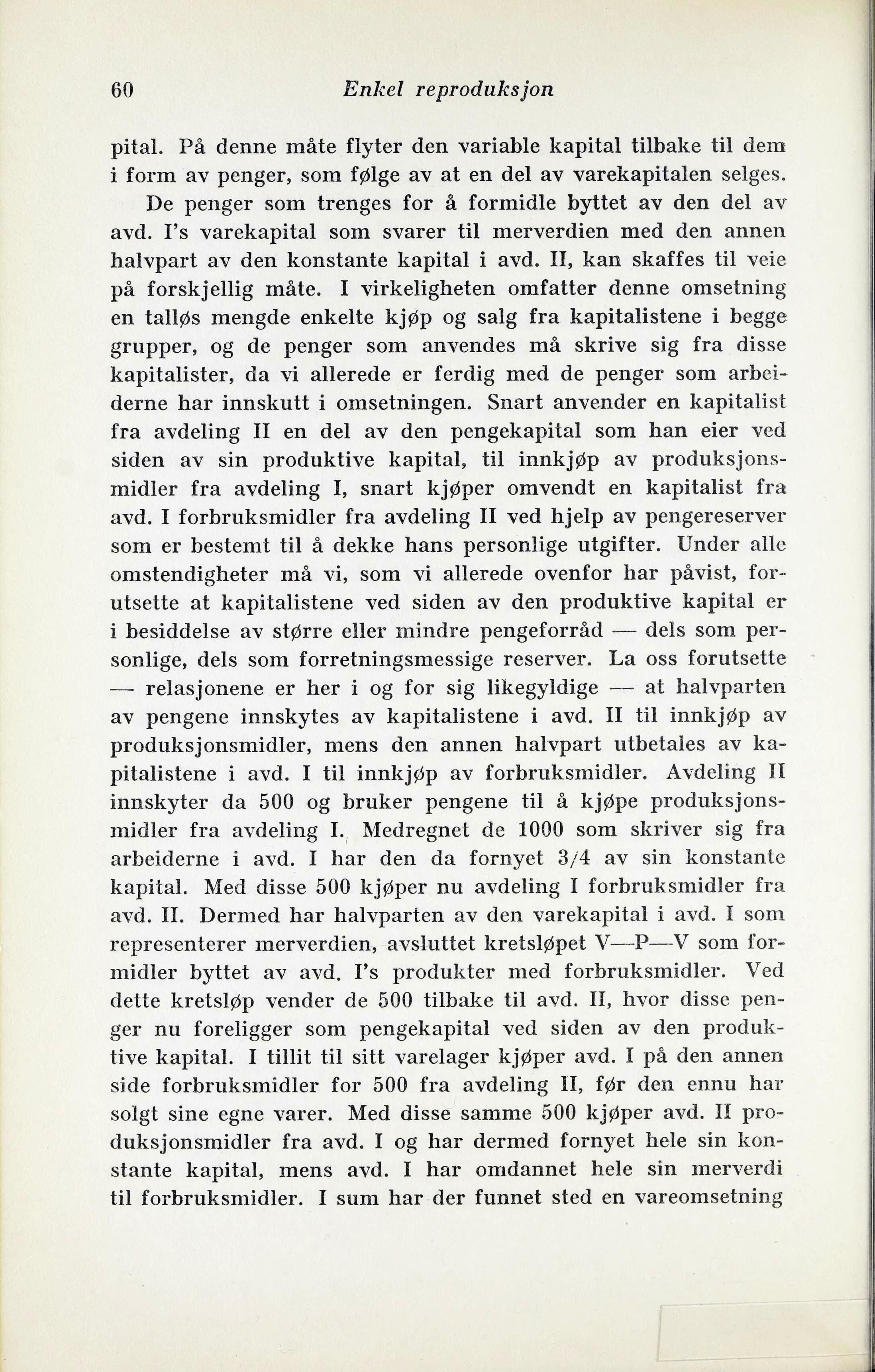 Full resolution (JPEG) - On this page / på denna sida - 3. Reproduksjon og omsetning av samfundets samlede kapital - 20. Enkel reproduksjon - III. Omsetningen mellem de to avdelinger. Bytte av (v + m) fra avd. I med k fra avd. II