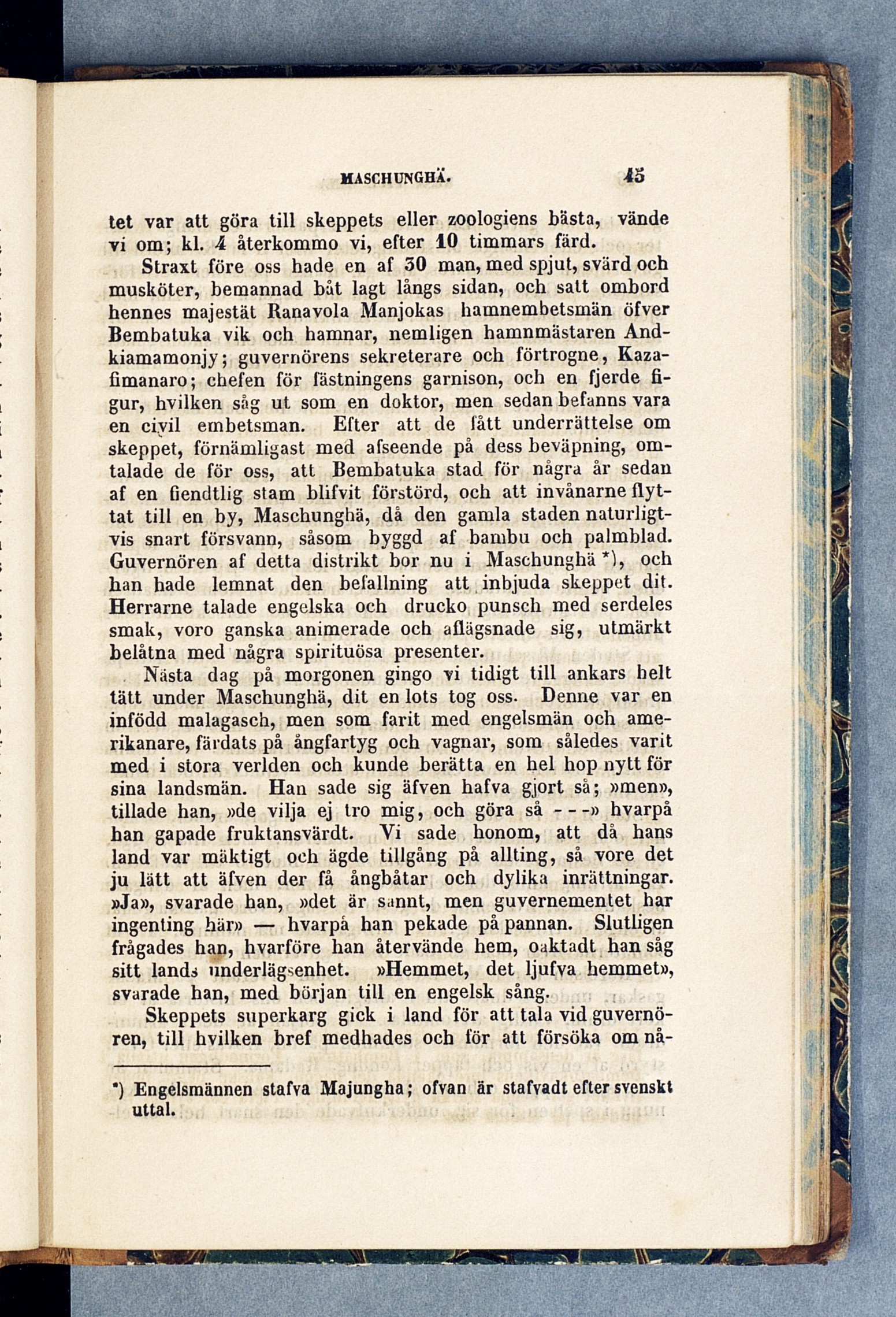 ") Engelsmännen stafva Majungha; ofvan är stafvadt efter svenskt