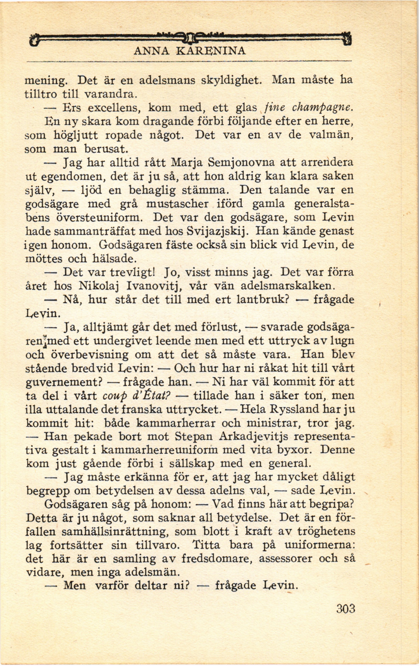 stående bredvid Levin: — Och hur har ni råkat hit till vårt