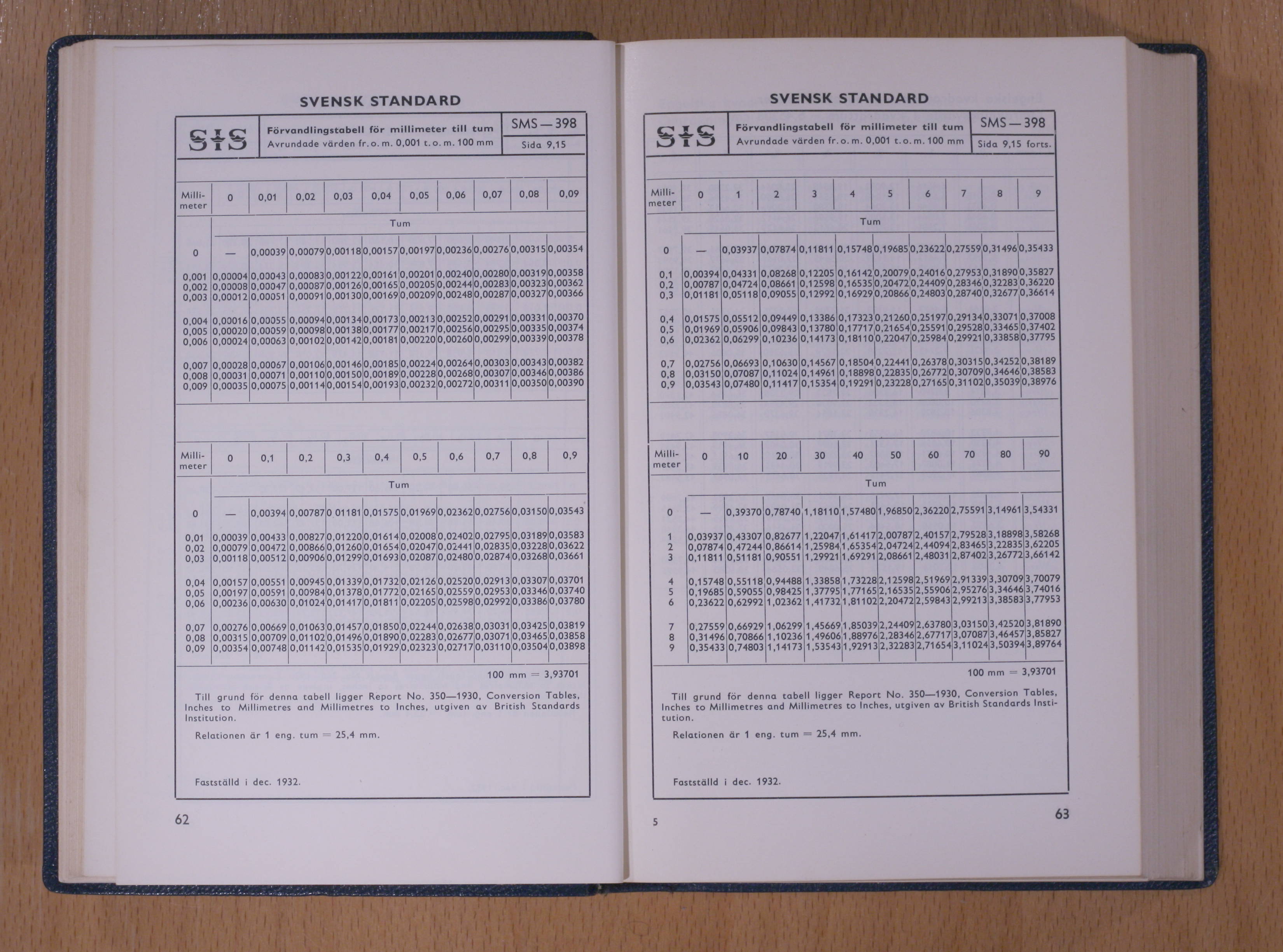 Full resolution (JPEG) - On this page / på denna sida - 2. Mått, vikter, enheter - SIS Förvandlingstabell för millimeter till tum