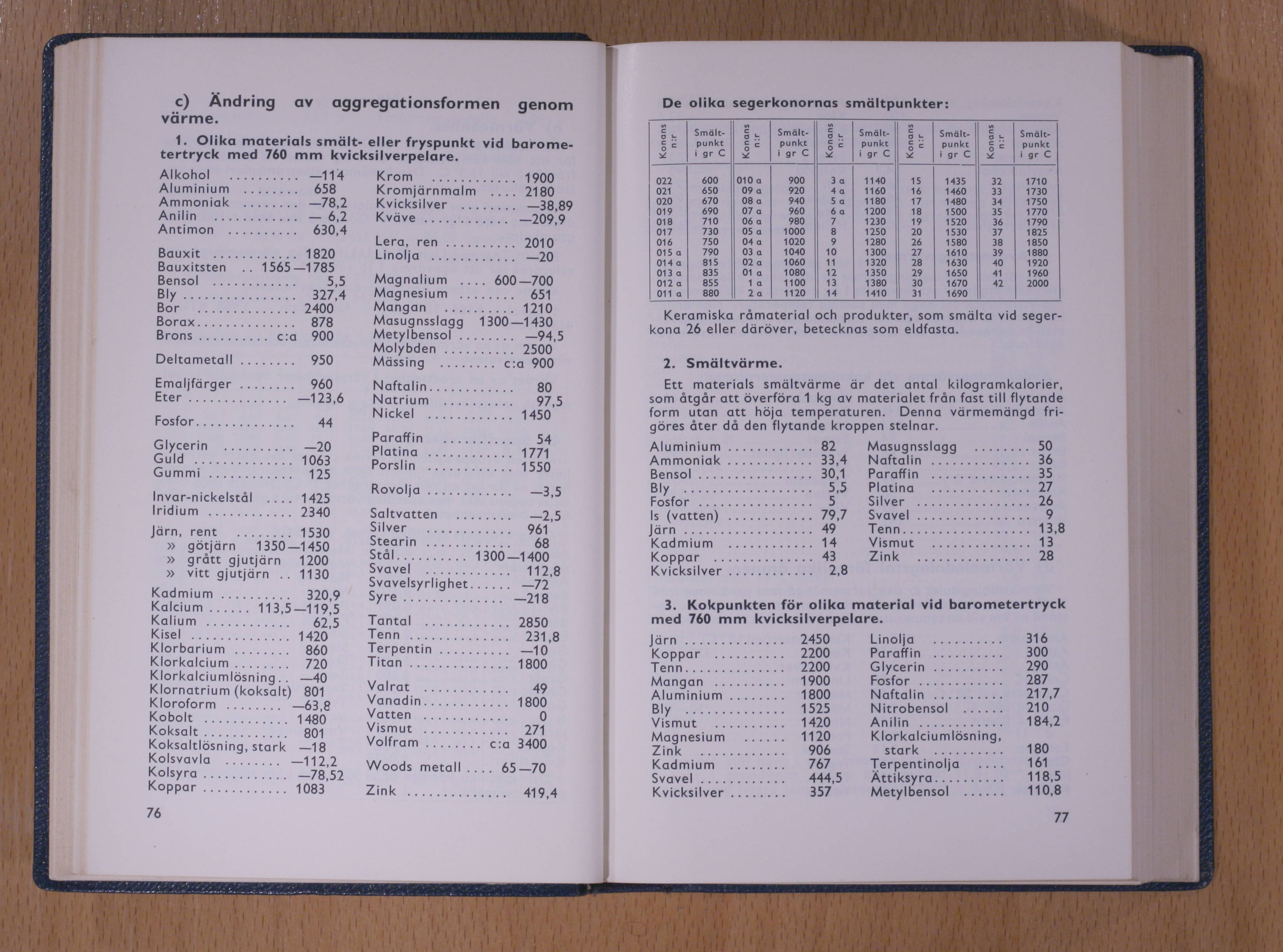 3.   Kokpunkten för olika material vid barometertryck
