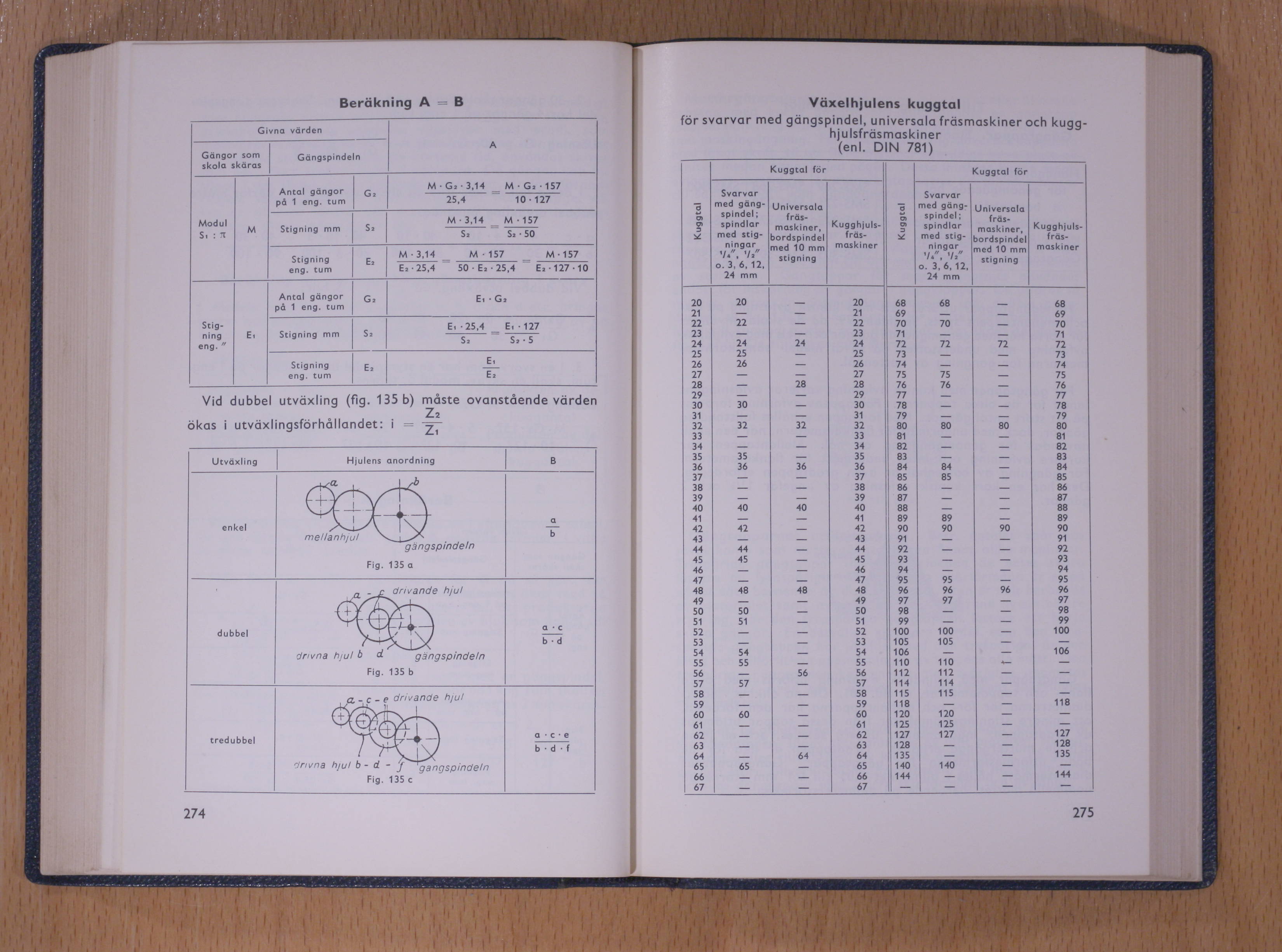 Vid dubbel utväxling  (fig. 135 b) måste ovanstående värden