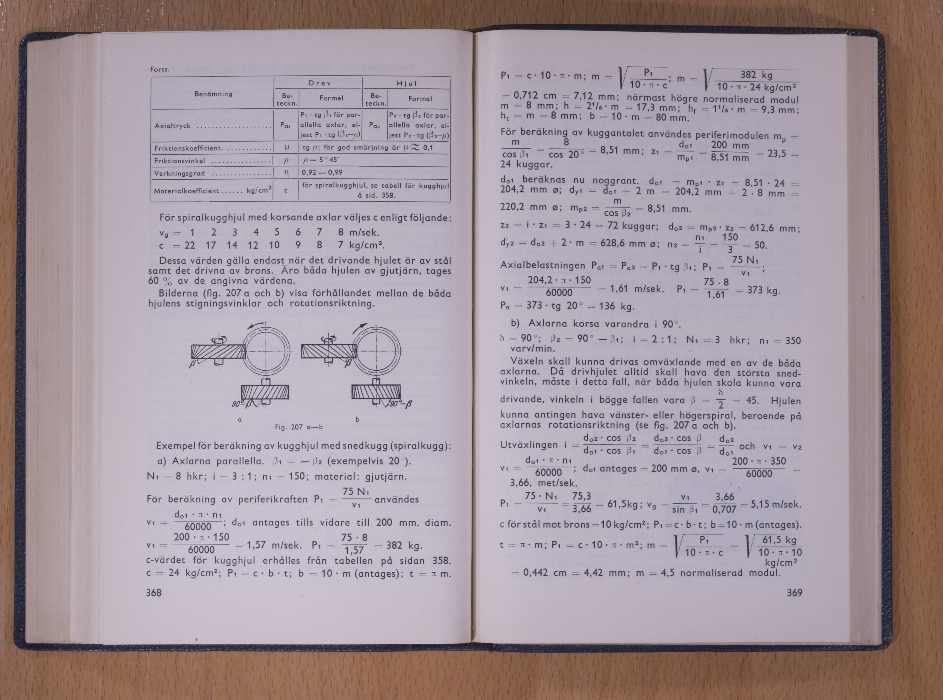 c-värdet för kugghjul erhålles från tabellen på sidan 358.