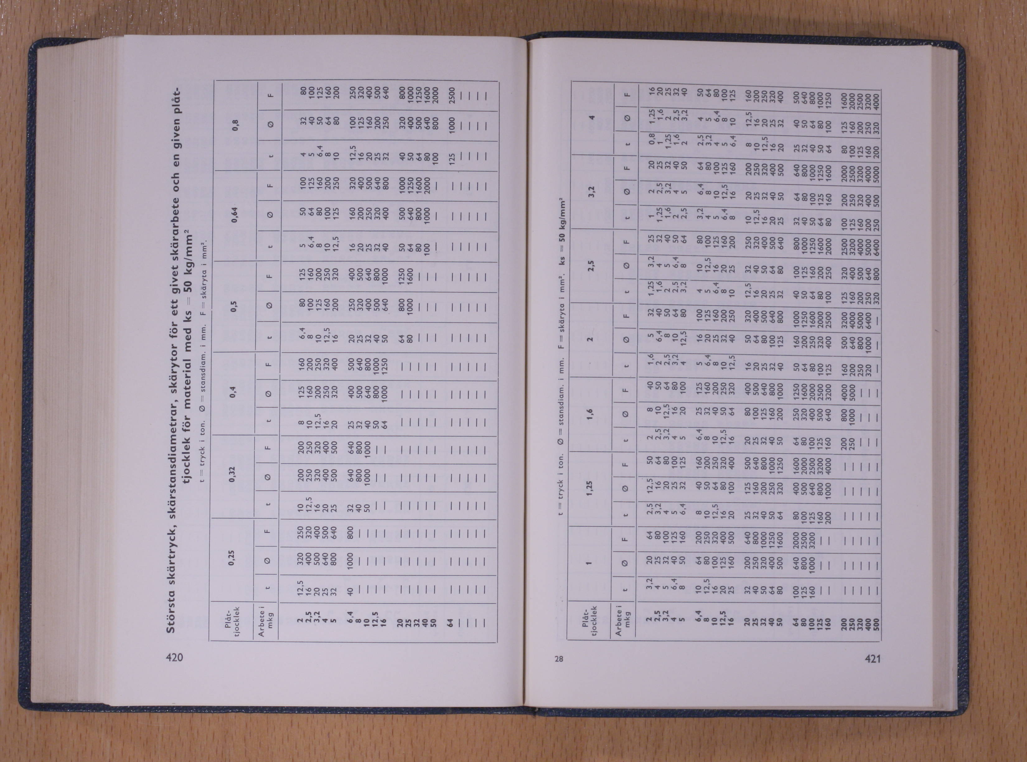 c tryck i con. 0 stansdiam. i mm. F - skäryta i mm3.
