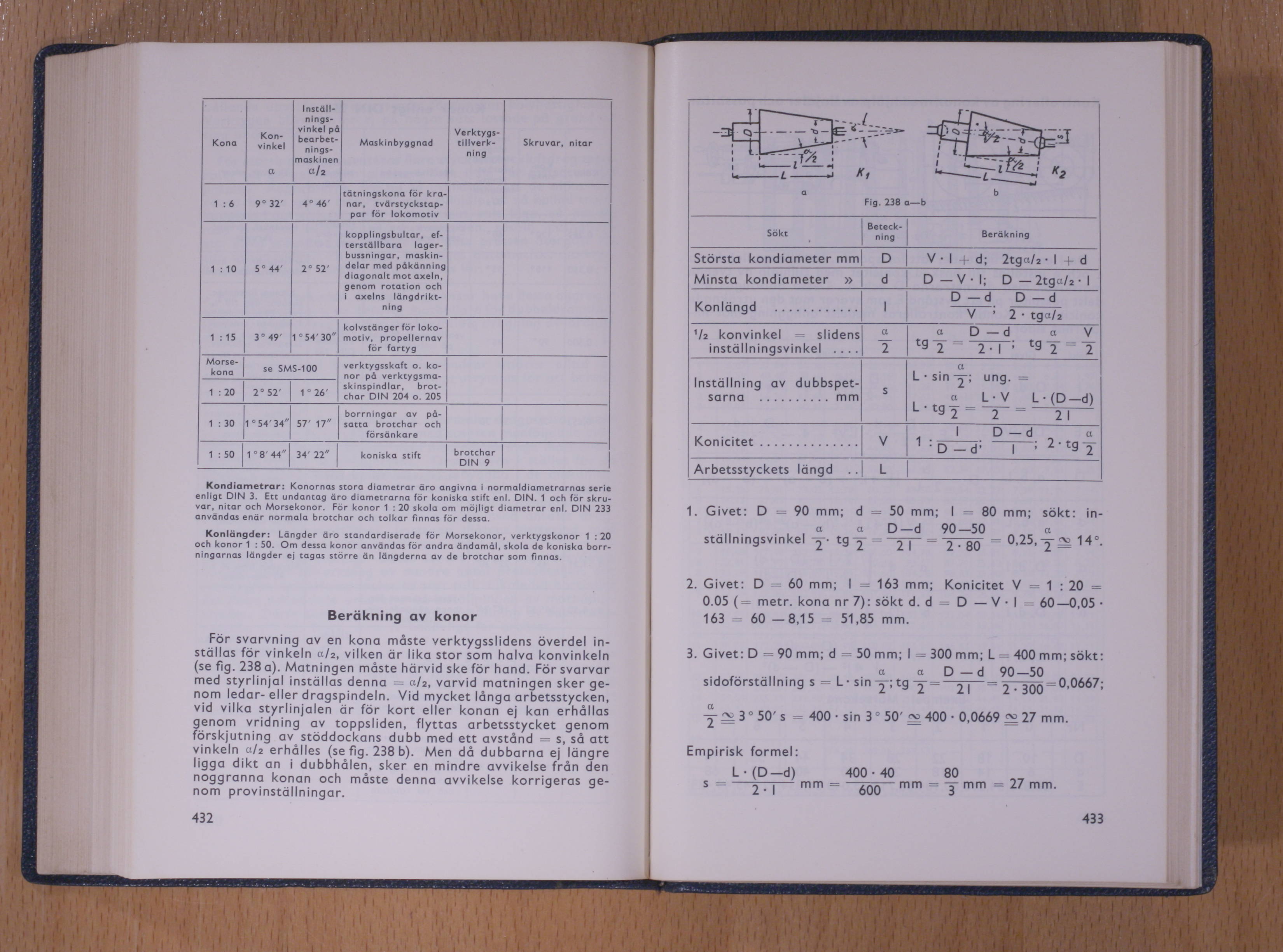Konlängder: Längder äro standardiserade för Morsekonor, verktygskonor 1 :20