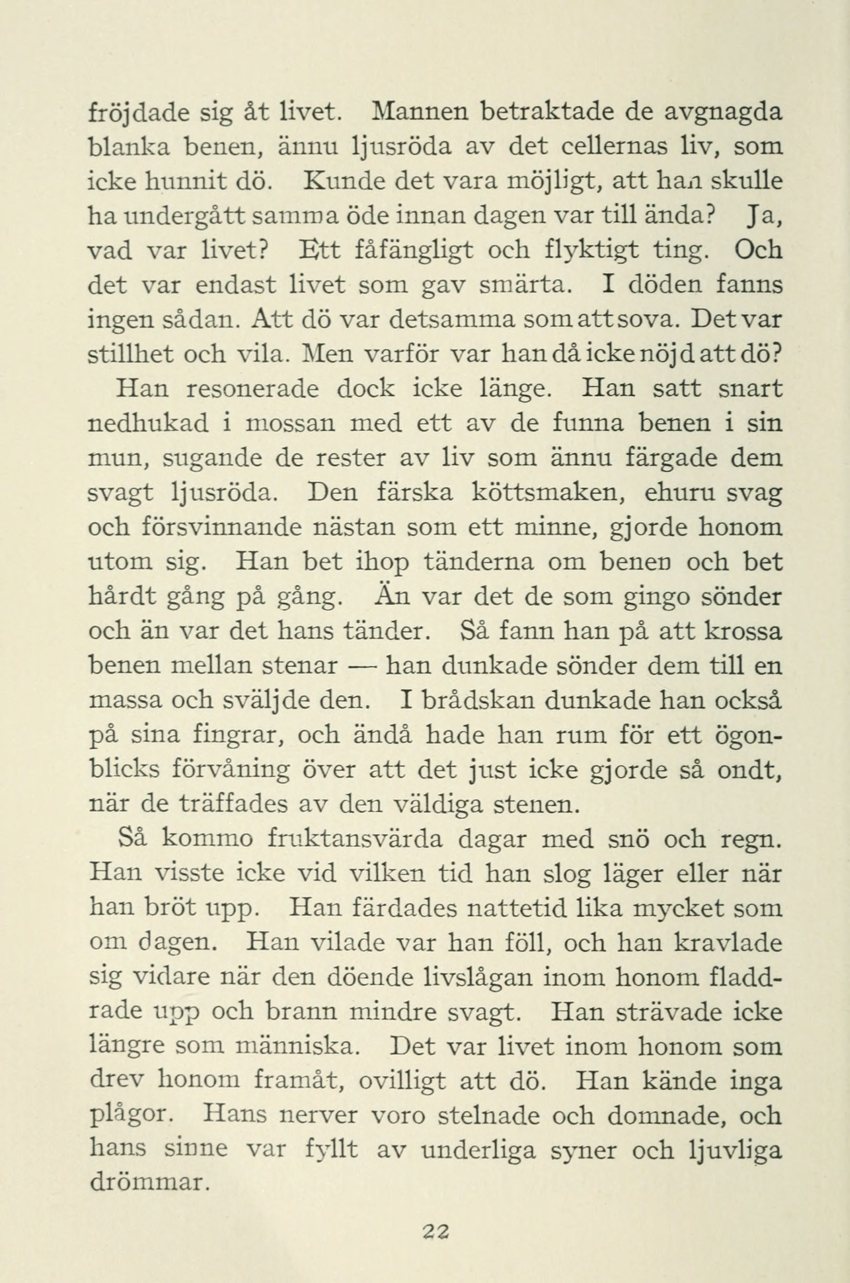 fröjdade sig åt livet. Mannen betraktade de avgnagda