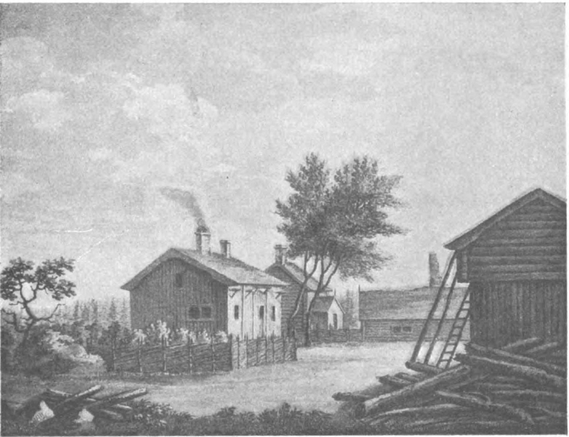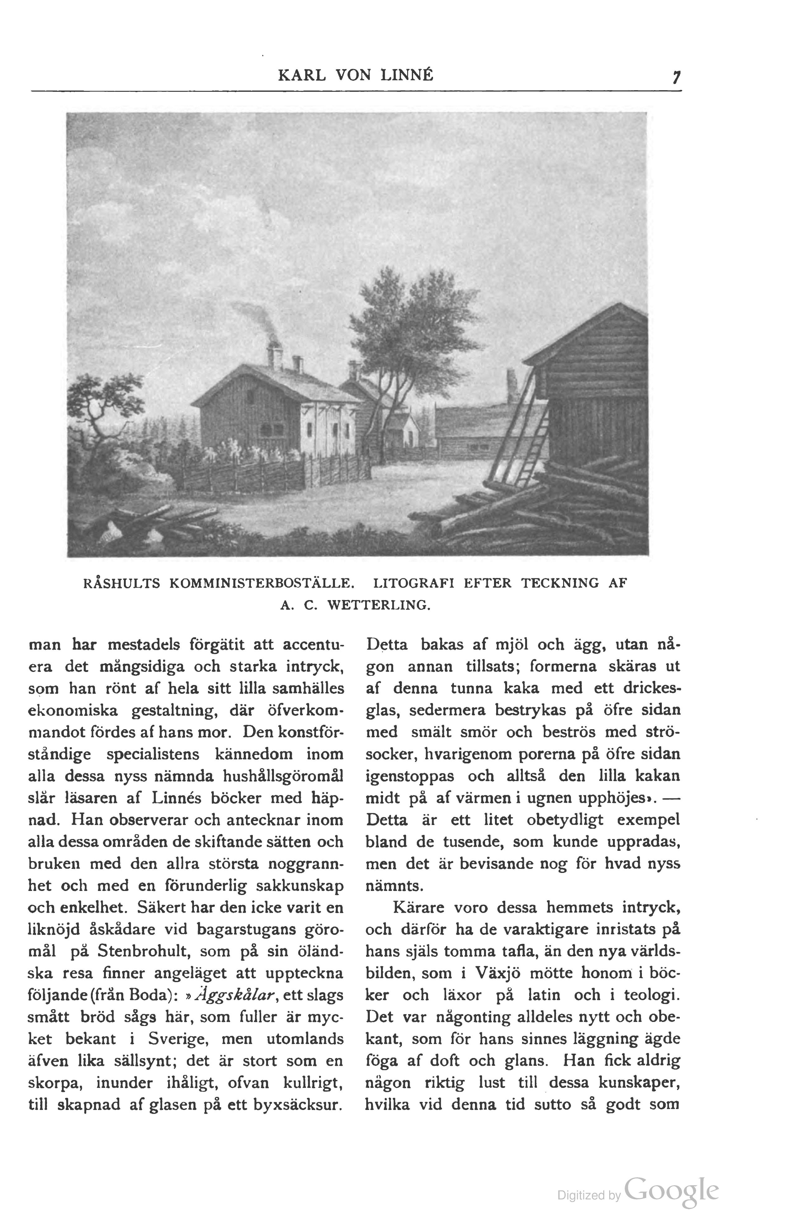 RÅSHULTS KOMMINISTERBOSTÄLLE. LITOGRAFI EFTER TECKNING AF A. C. WETTERLING. |