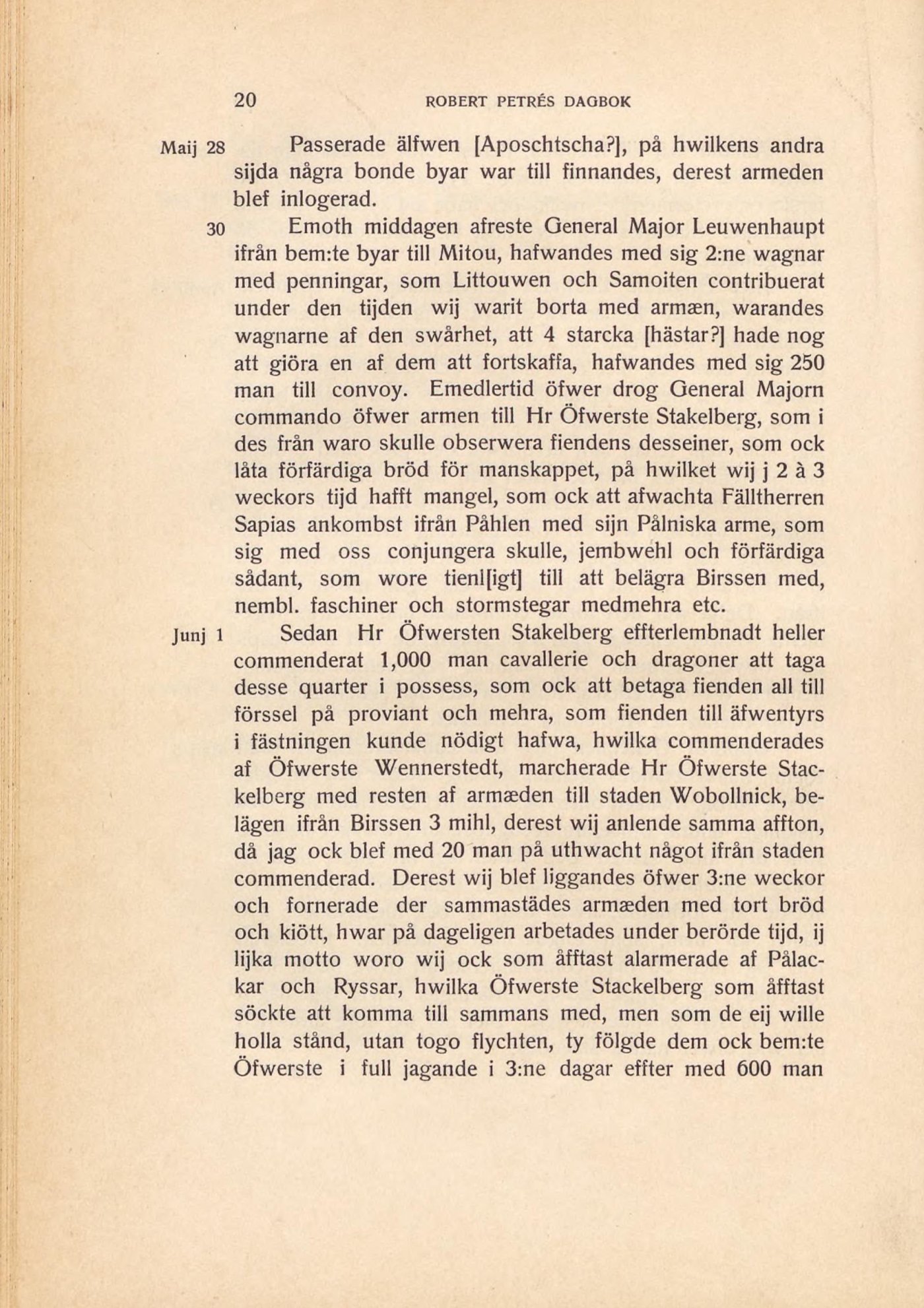 Full resolution (JPEG) - On this page / på denna sida - Fänrik Robert Petrés dagbok 1702-1709 - Robert Petrés dagbok under kriget ifrån år 1702 till slaget vid Pultava - Anno 1704