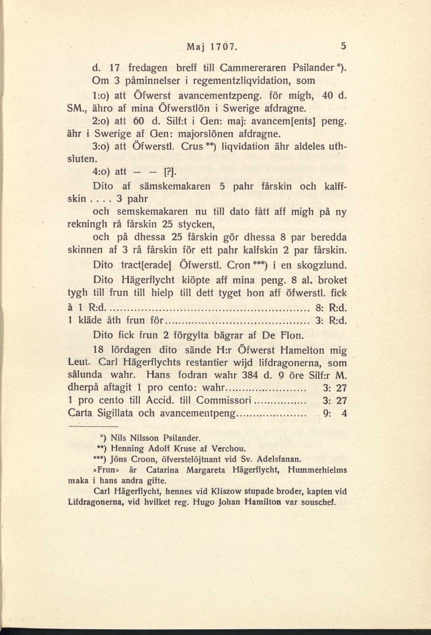3:o) att Öfwerstl. Crus **) liqvidation ähr aldeles