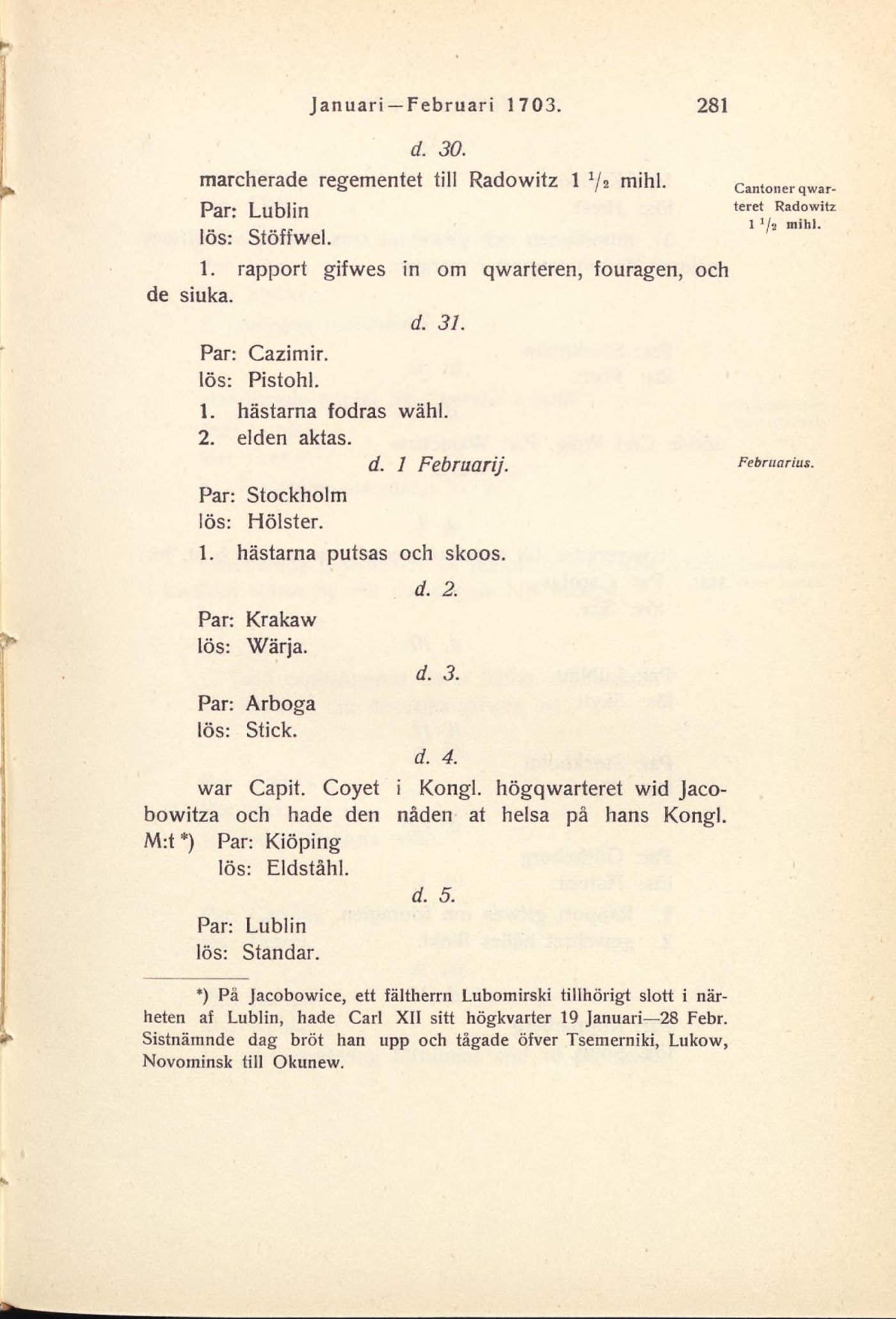 närheten af Lublin, hade Carl XII sitt högkvarter 19 Januari—28 Febr.