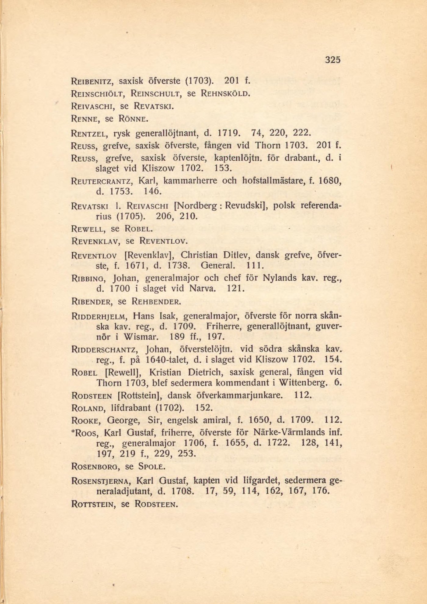 Reuss, grefve, saxisk öfverste, fången vid Thorn 1703. 201 f.