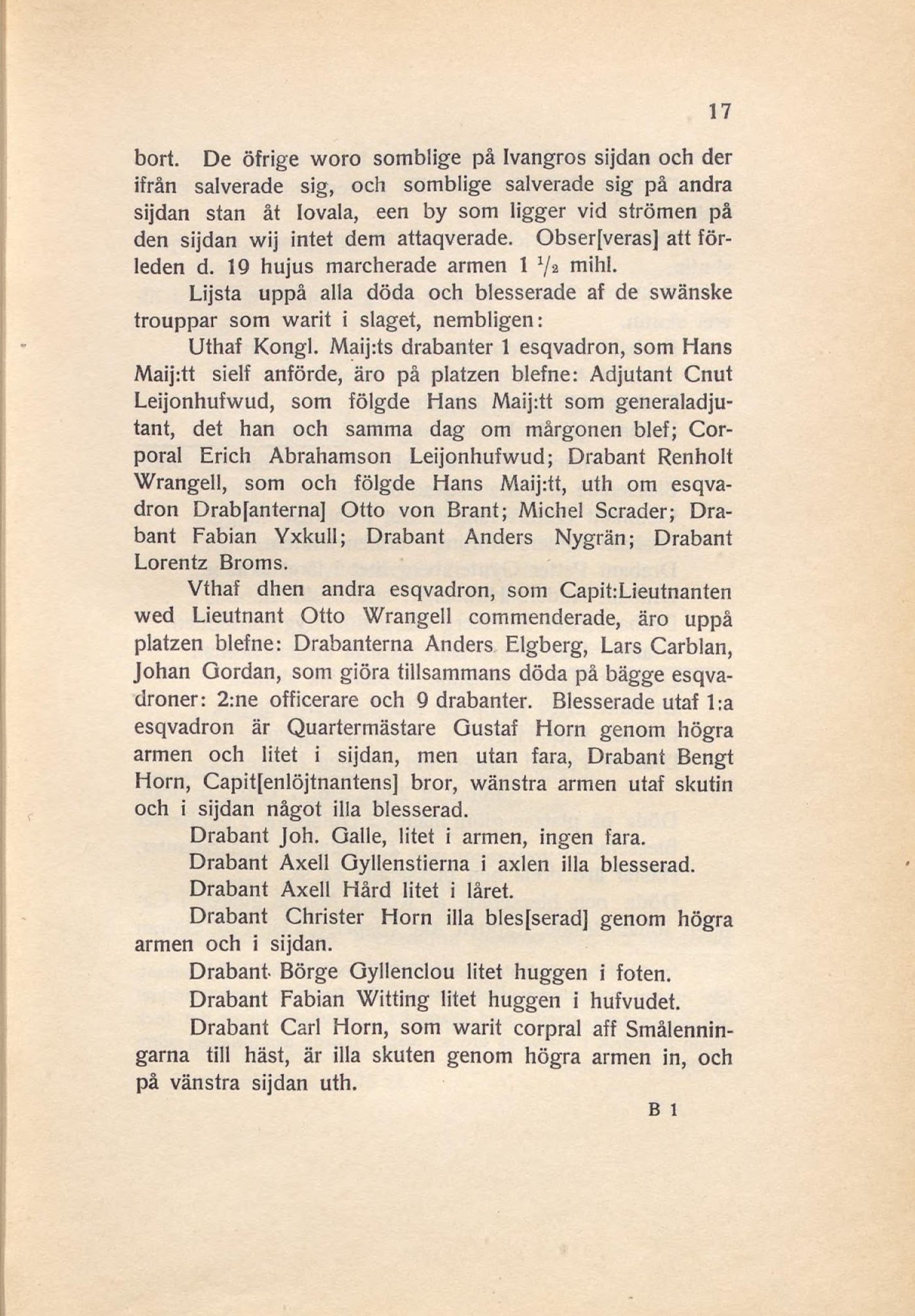 esqva-droner: 2:ne officerare och 9 drabanter. Blesserade utaf l:a