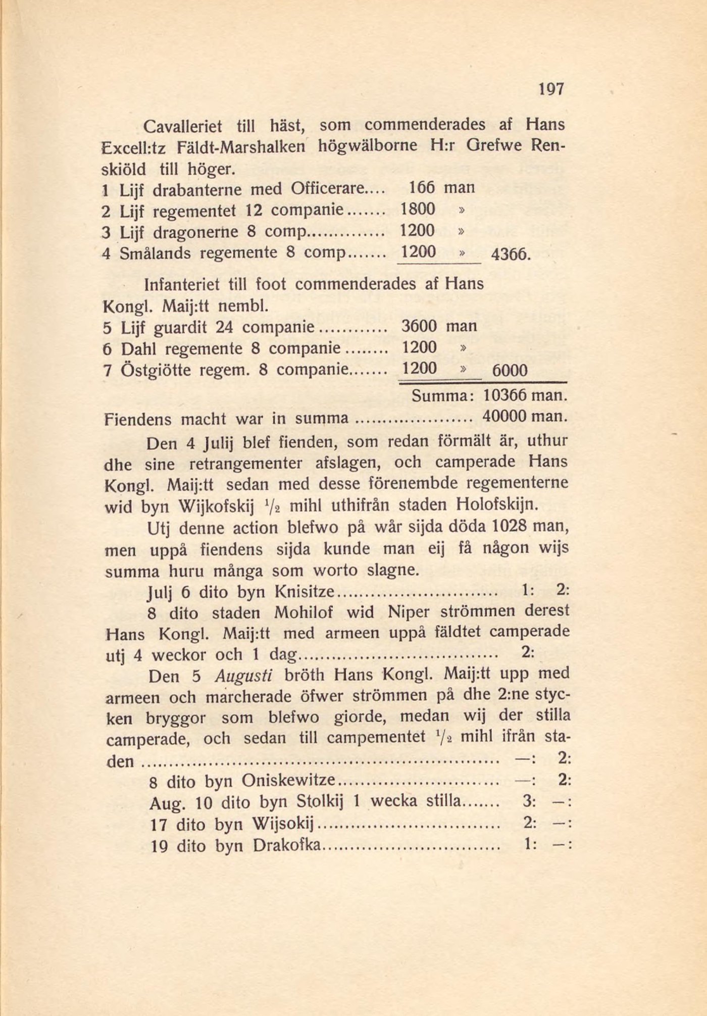 1 Lijf drabanterne med Officerare.... 166 man