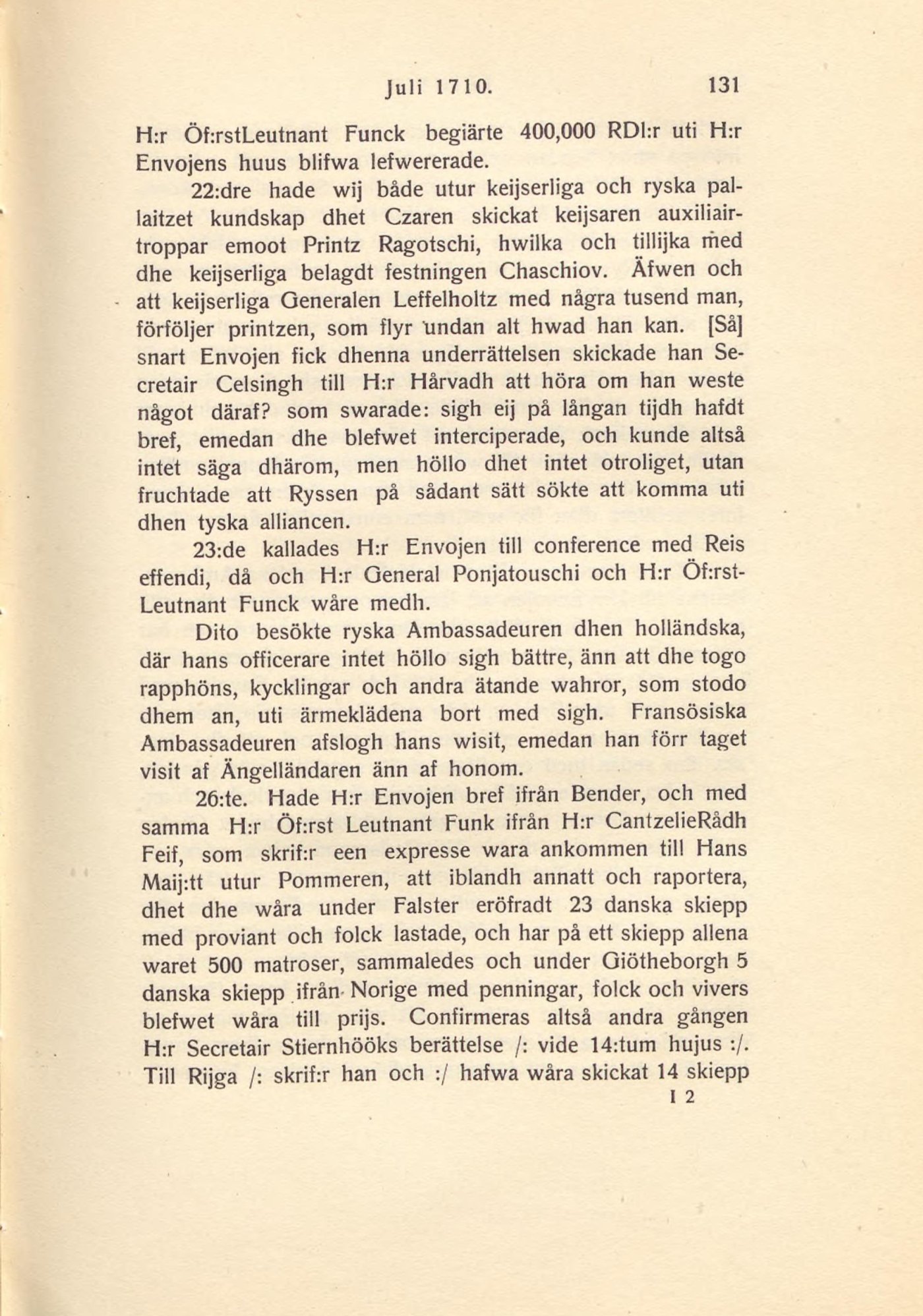 samma H:r Öf:rst Leutnant Funk ifrån H:r CantzelieRådh