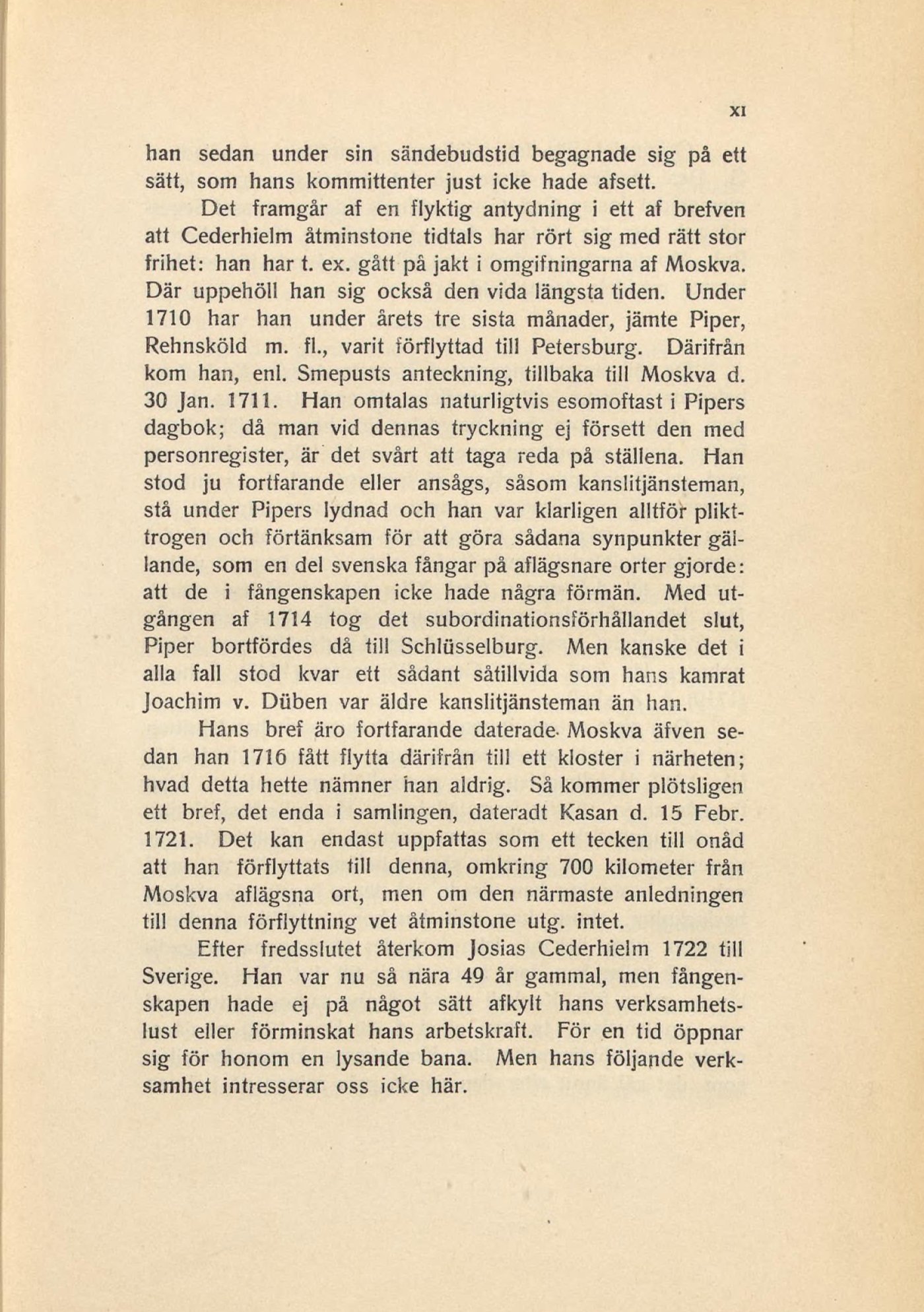 30 Jan. 1711. Han omtalas naturligtvis esomoftast i Pipers
