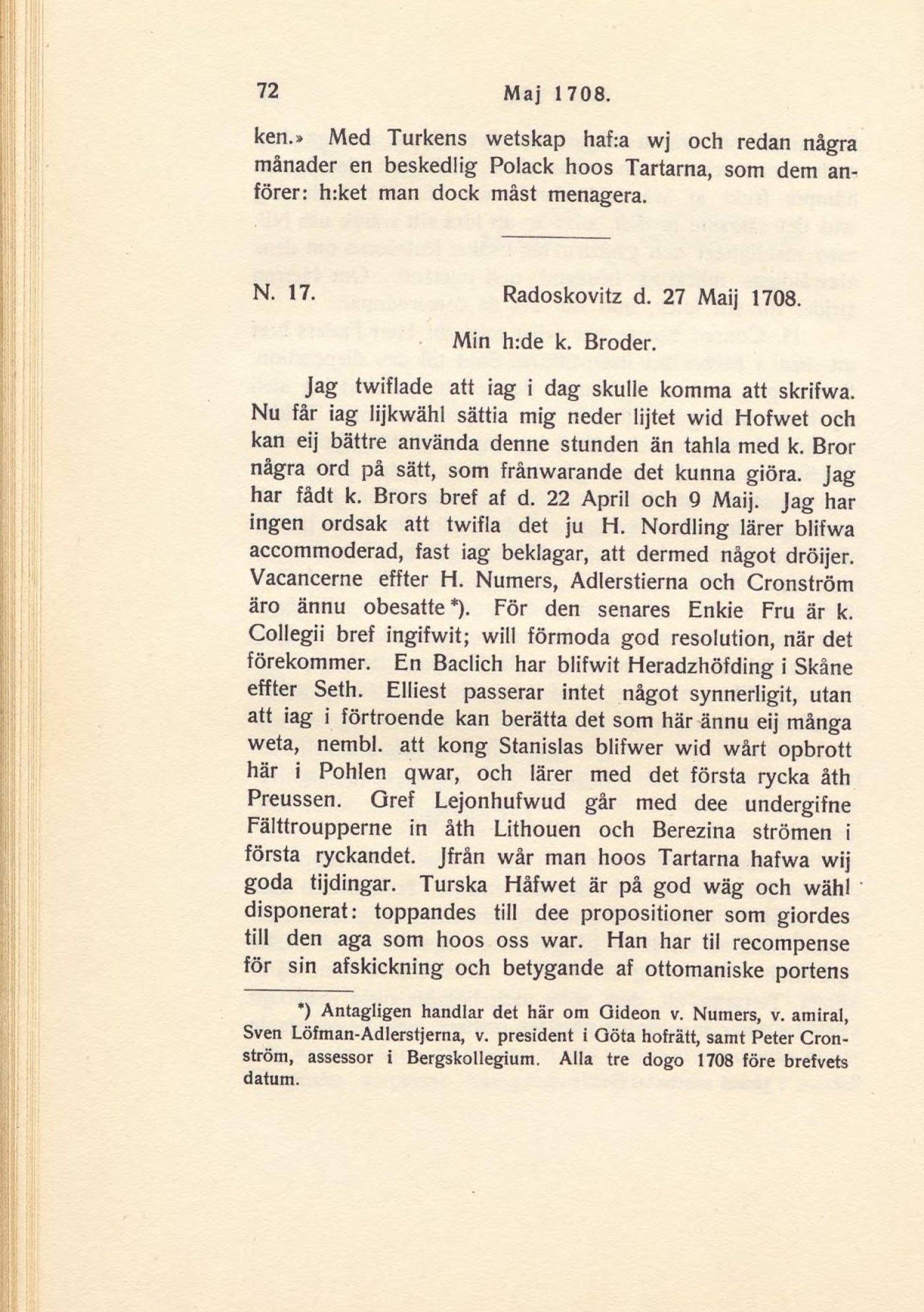 N. 17. Radoskovitz d. 27 Maij 1708.