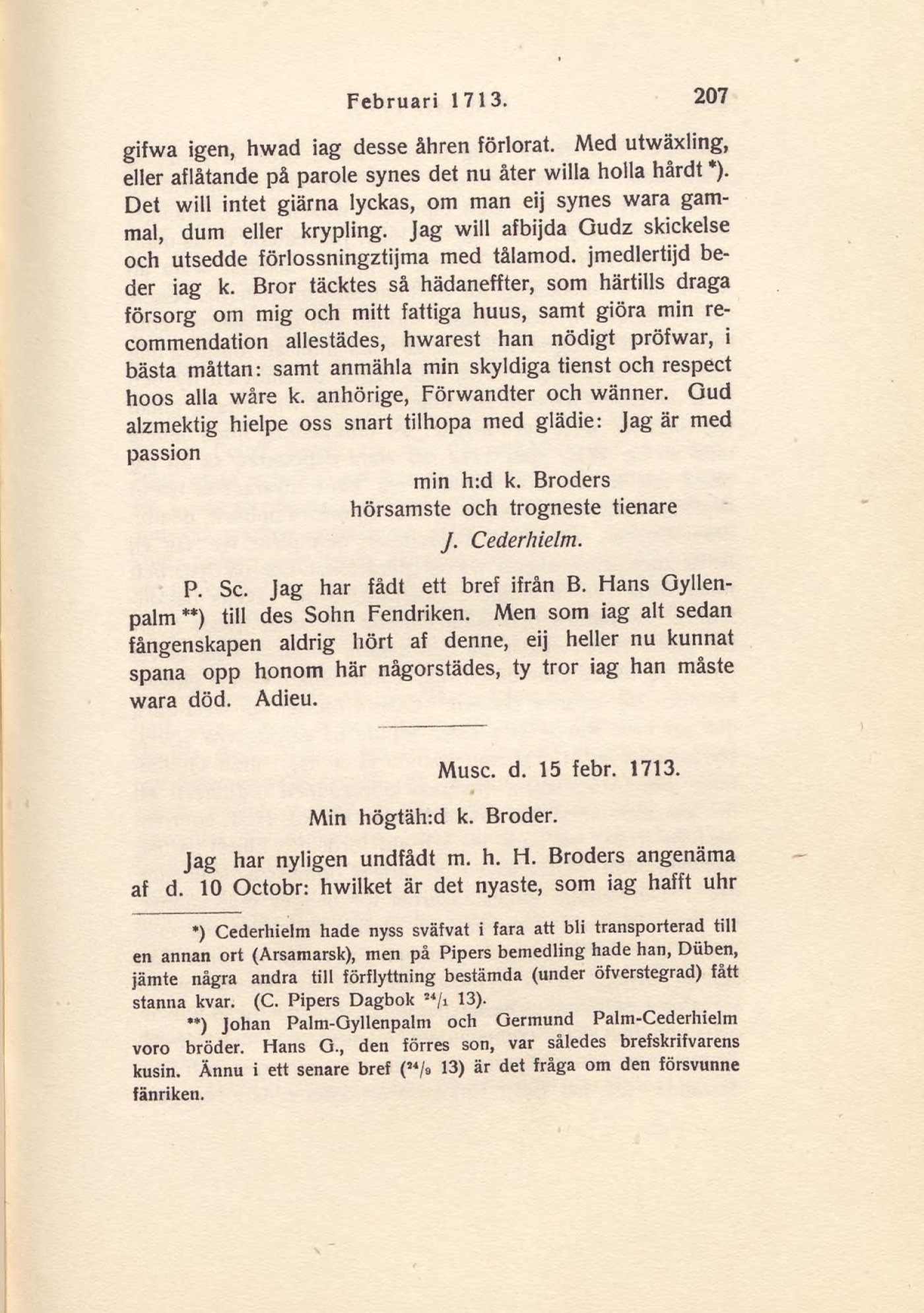 *) Cederhielm hade nyss sväfvat i fara att bli transporterad till
