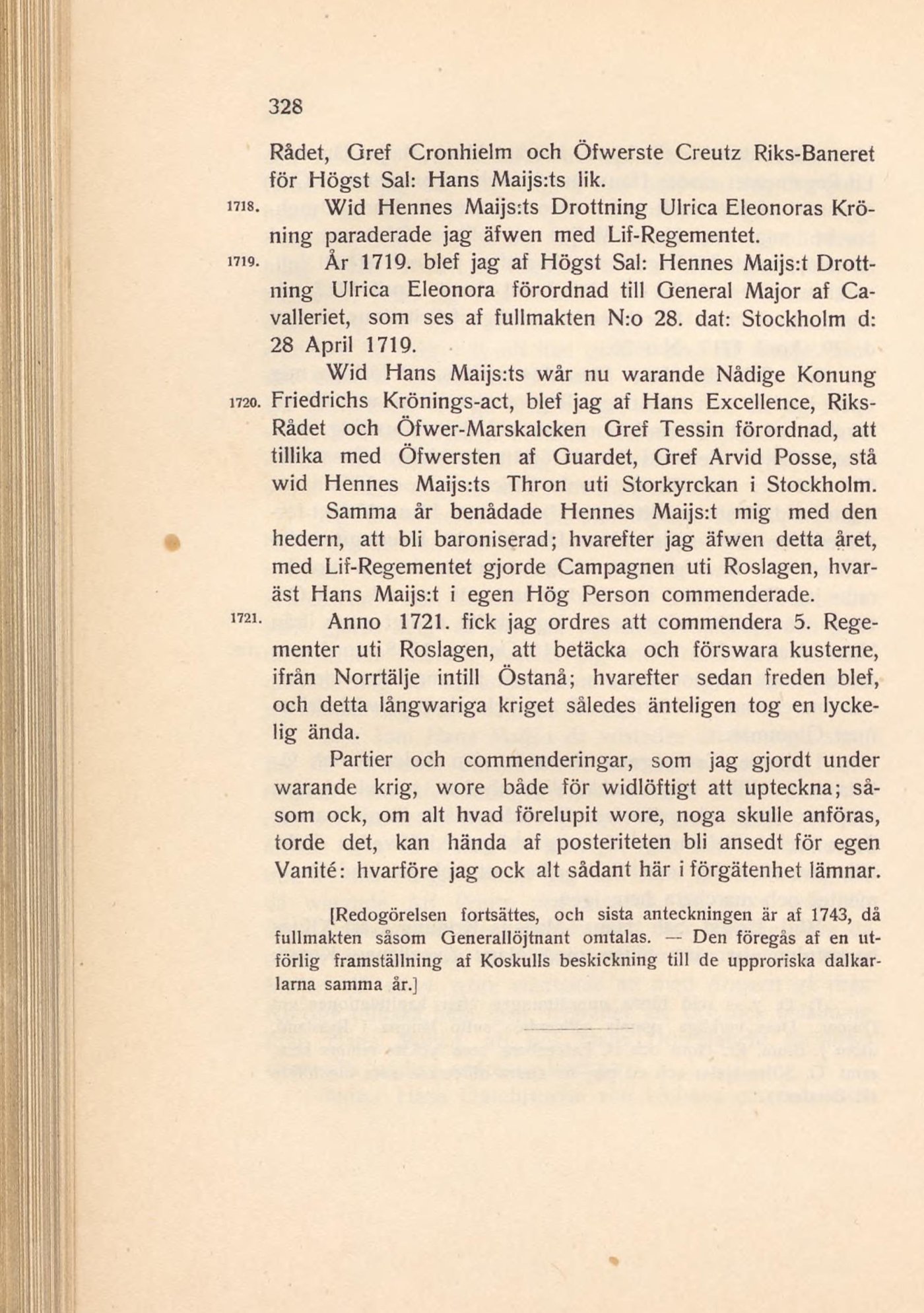 År 1719. blef jag af Högst Sal: Hennes Maijs:t