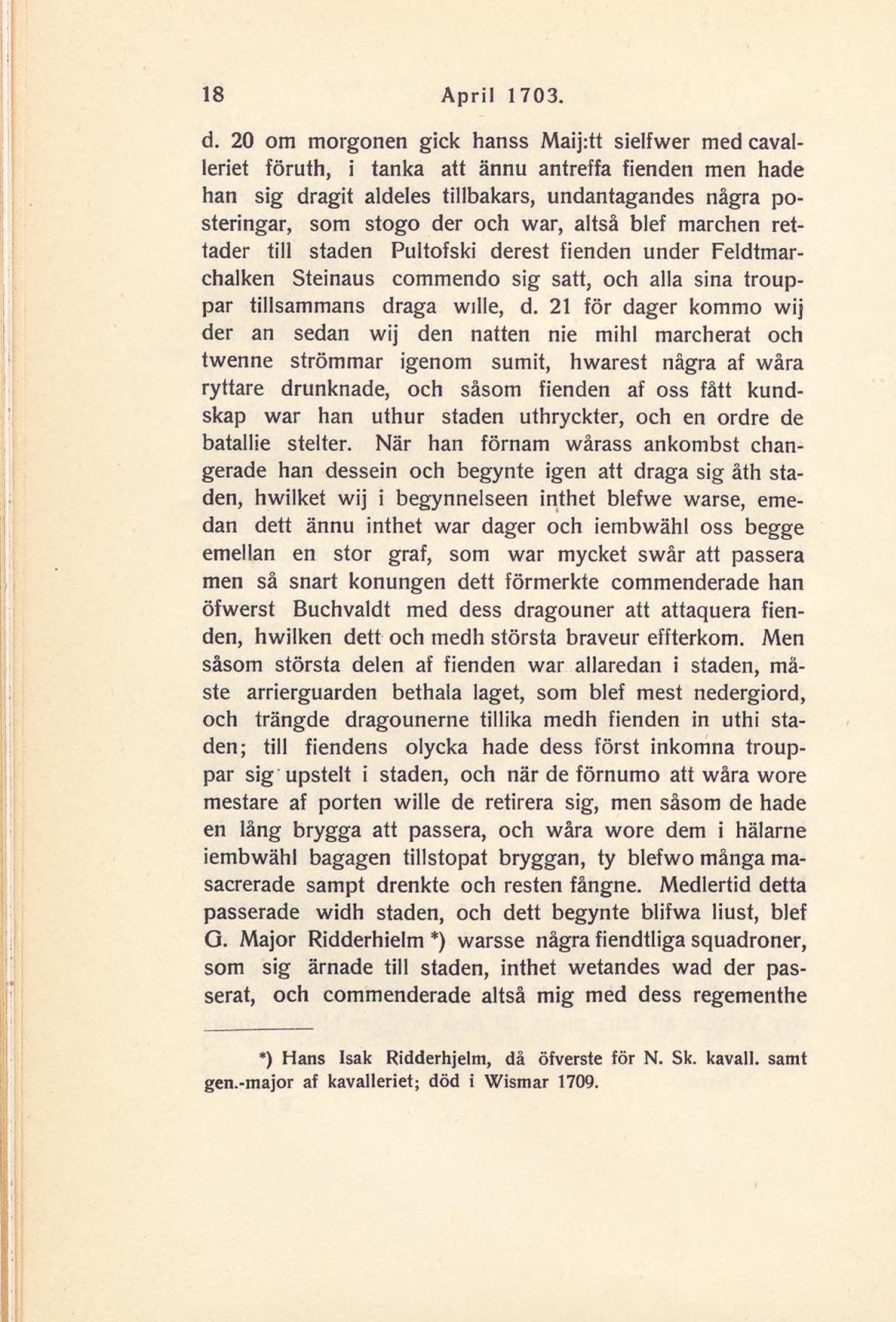 *) Hans Isak Ridderhjelm, då öfverste för N. Sk. kavall. samt