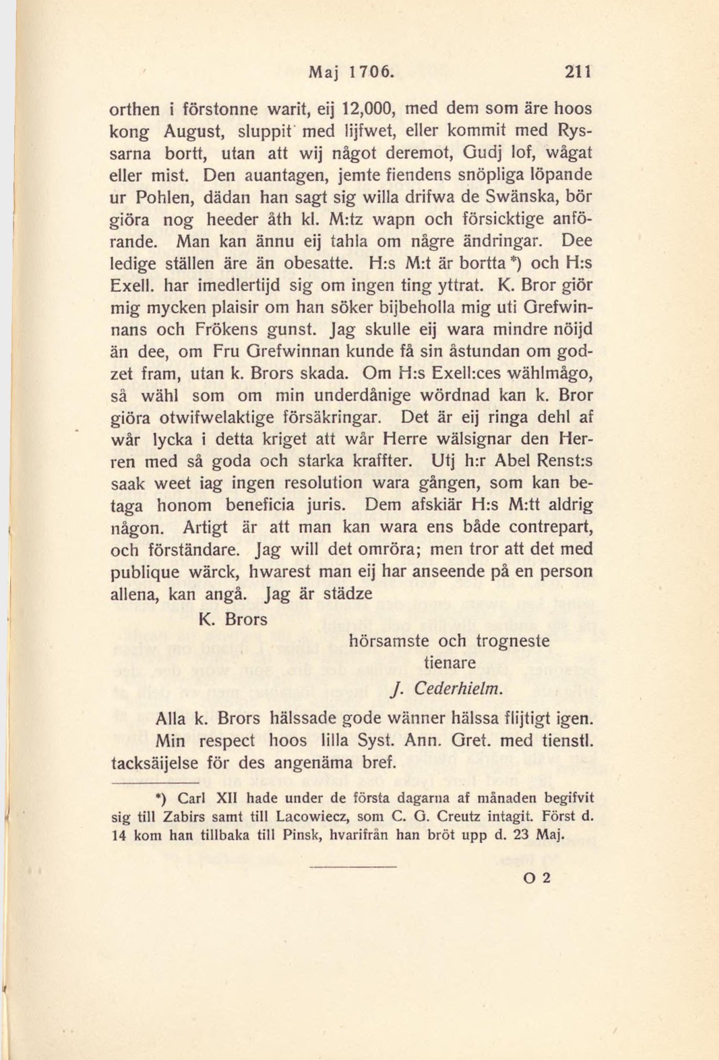 *) Carl XII hade under de första dagarna af månaden begifvit