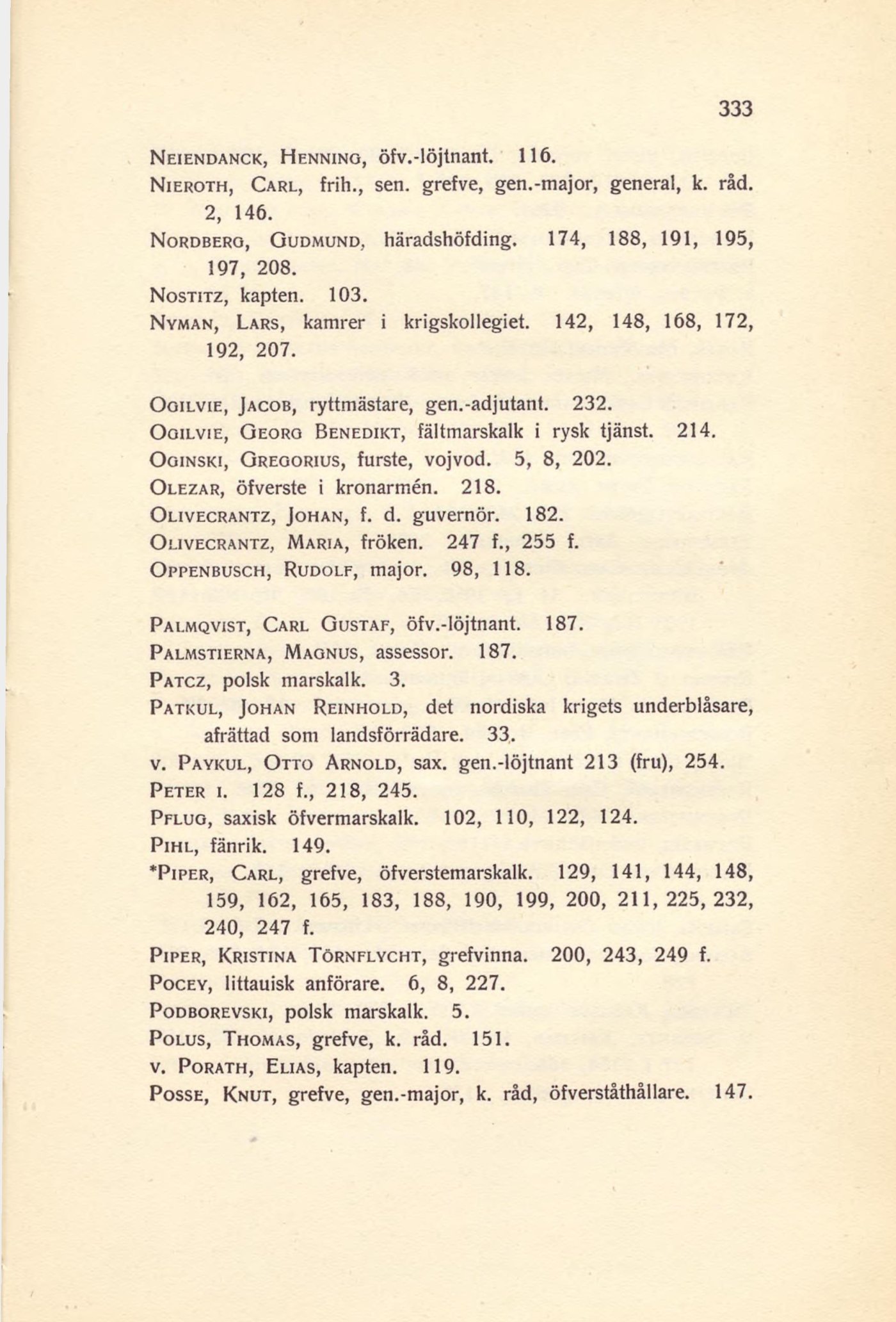 *Piper, Carl, grefve, öfverstemarskalk. 129, 141, 144, 148,