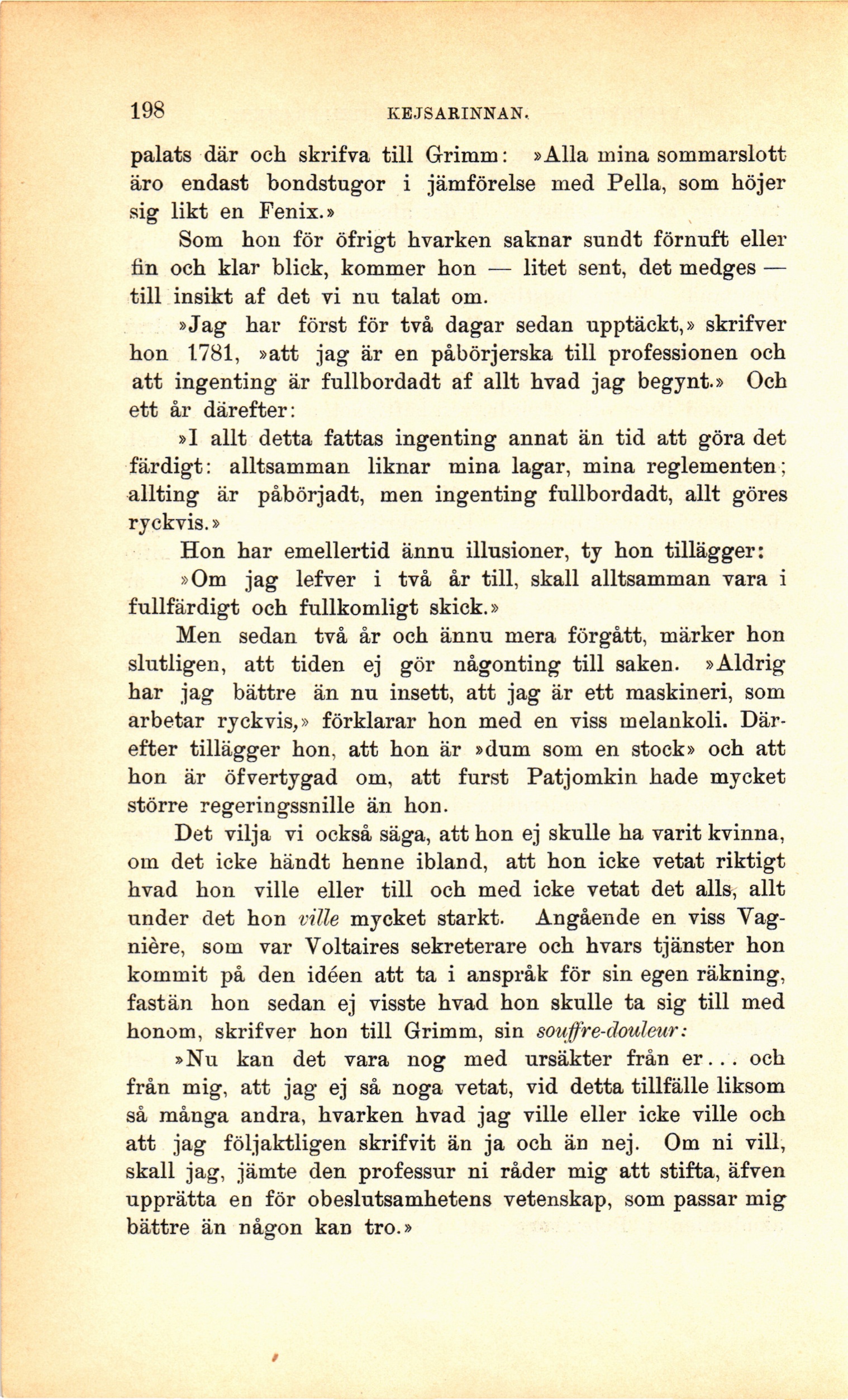 palats där och skrifva till Grimm: »Alla mina sommarslott