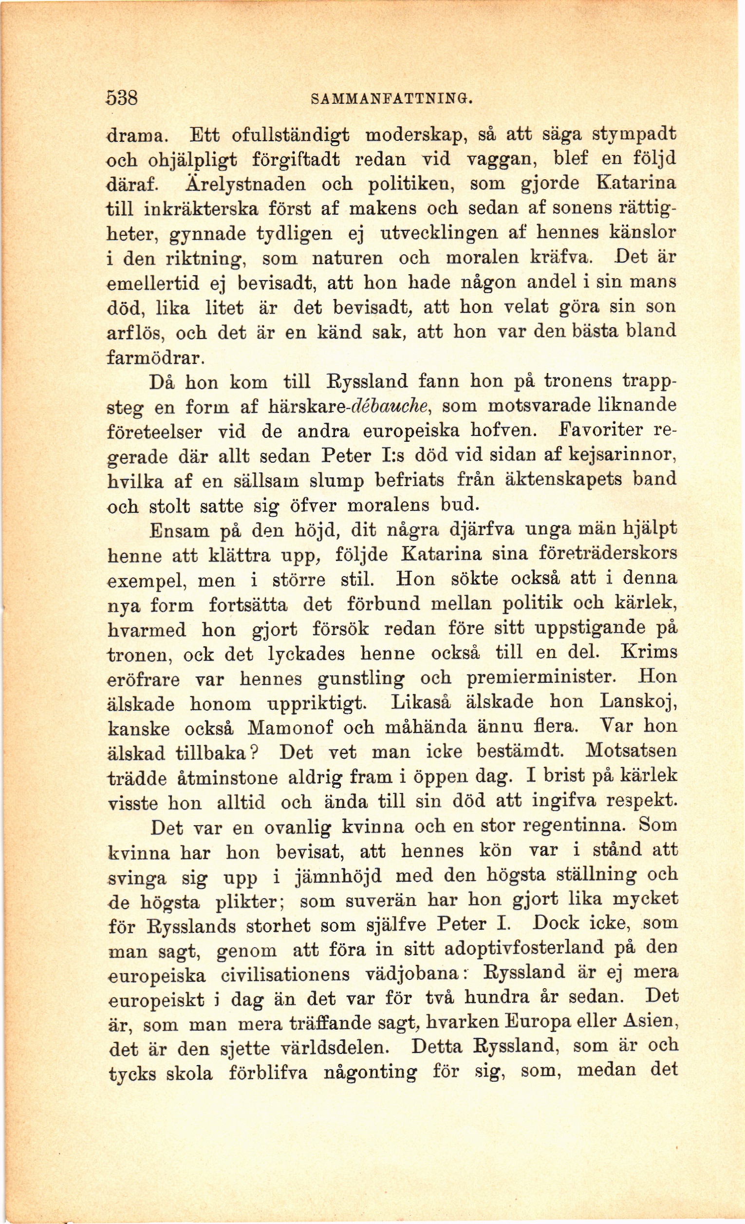 för Rysslands storhet som själfve Peter I. Dock icke, som