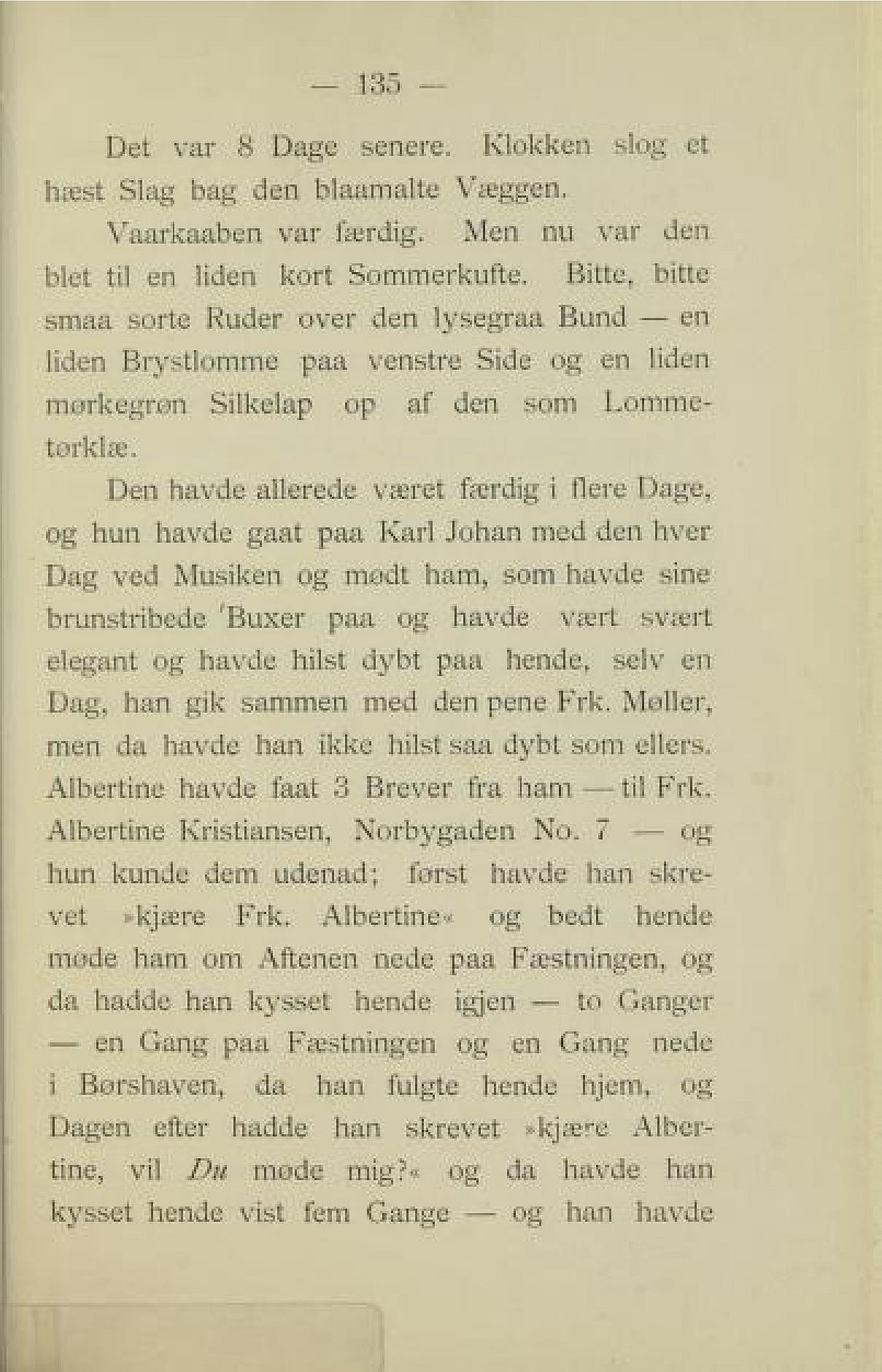skrevet "-kjære Frk. Albertine« og bedt hende