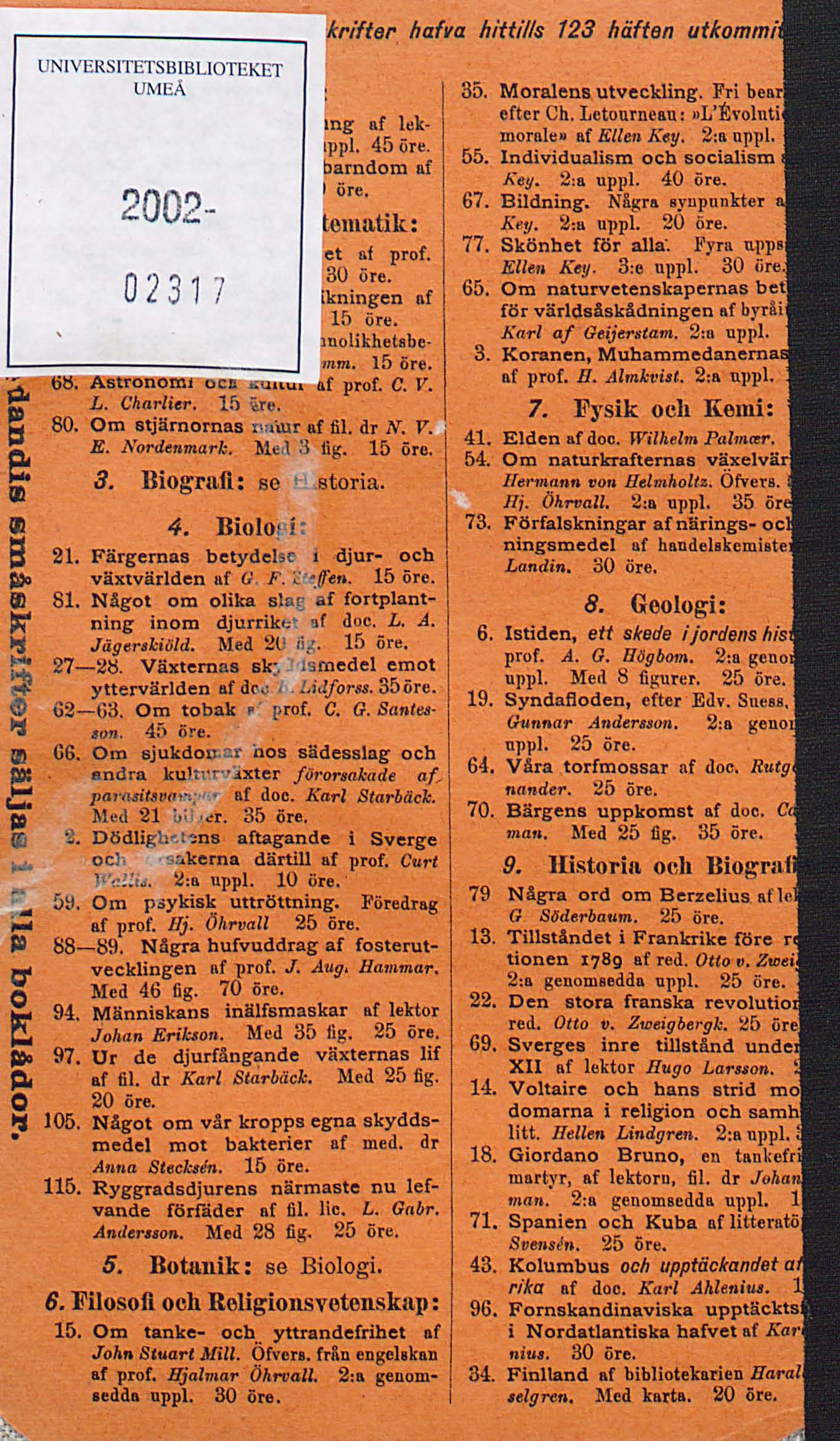 | Af Verdandis Småskrifter hafva hittills 123 häften utkommit. |