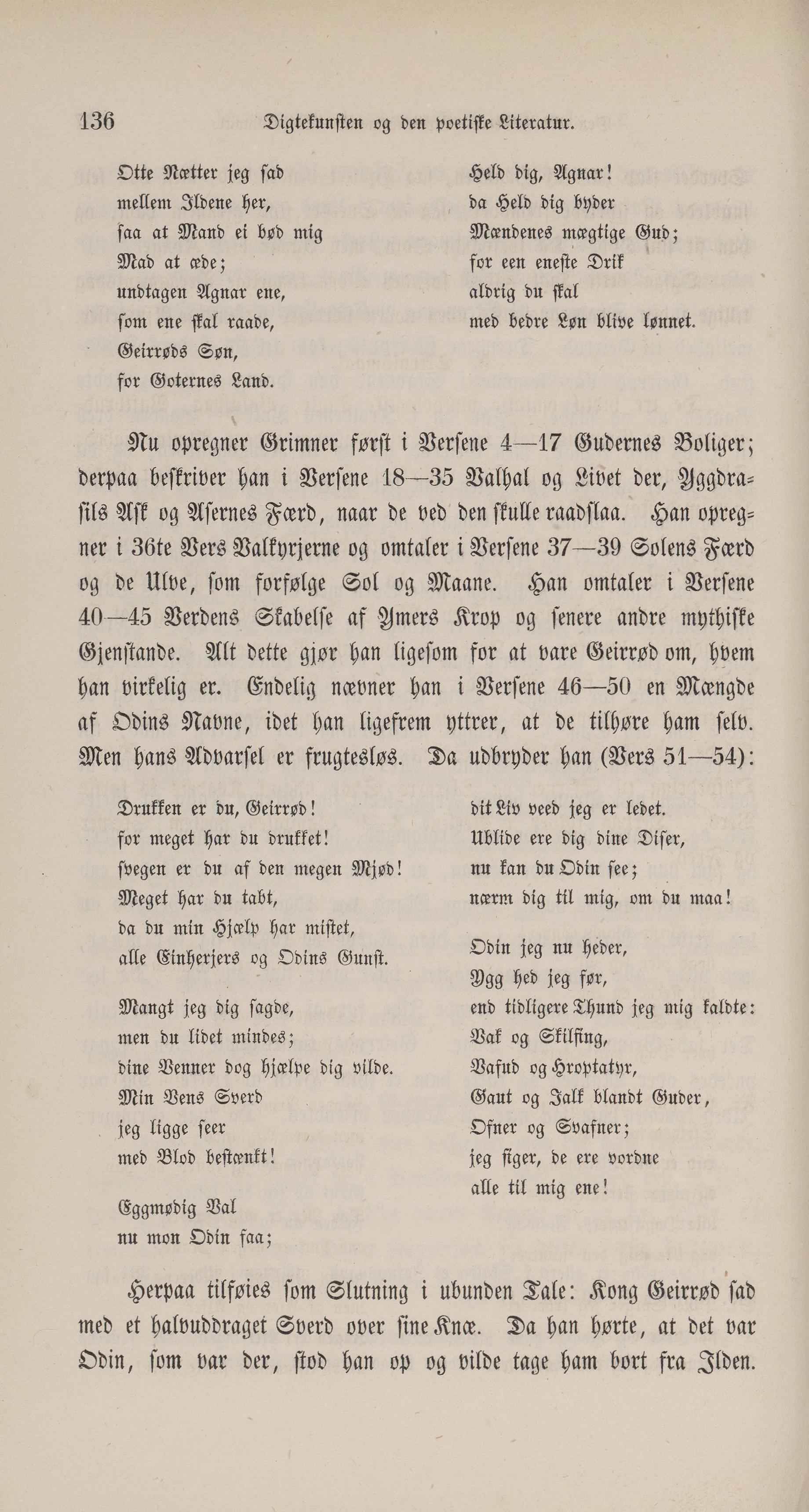 Full resolution (JPEG) - On this page / på denna sida - Digtekunsten og den poetiske Literatur - 7. De ældste norske Skaldeverker uden Forfatternavn. Den ældre Edda - 4. Grimnismaal