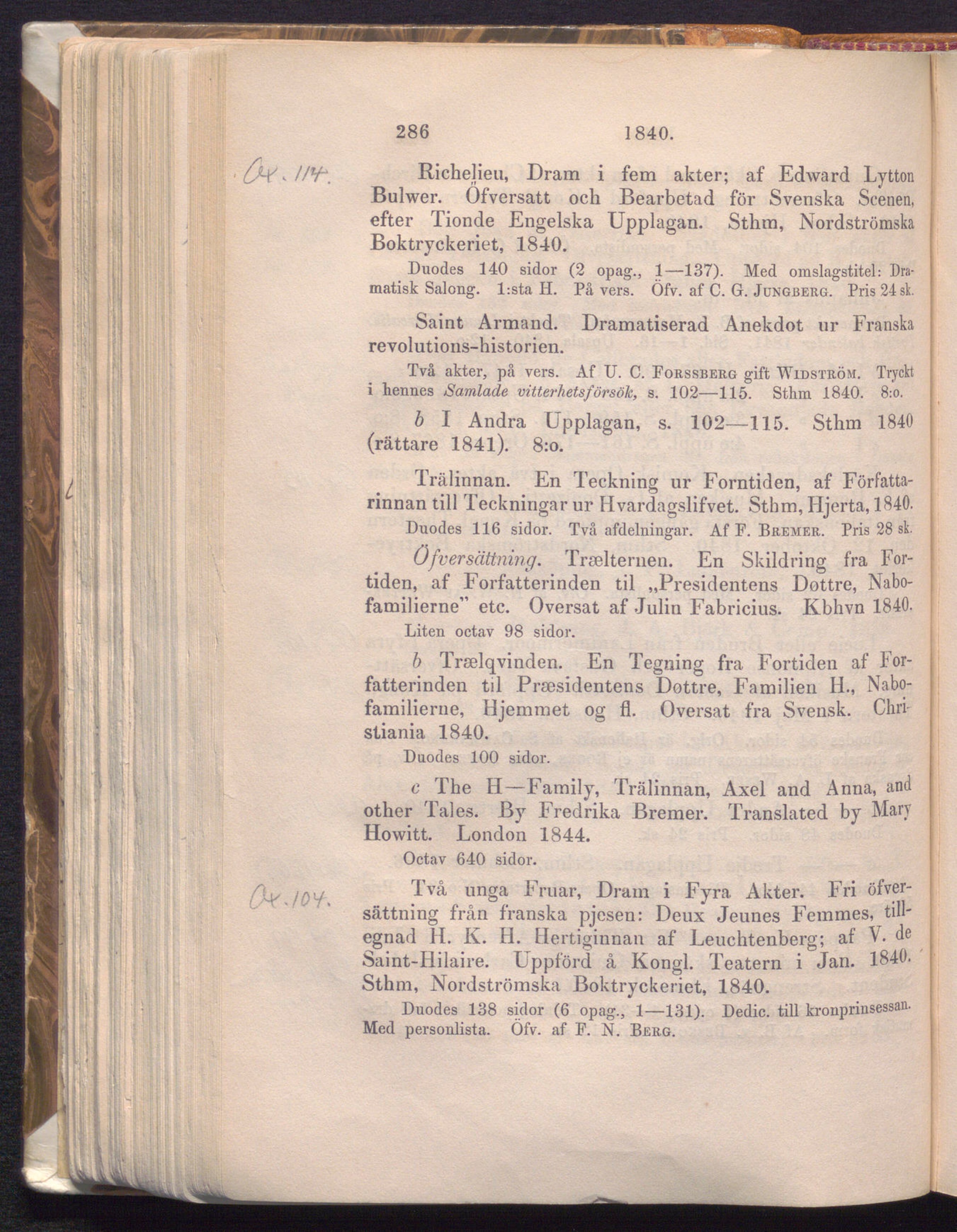 familierne"" etc. Oversat af Julin Fabricius. Kbhvn 1840.