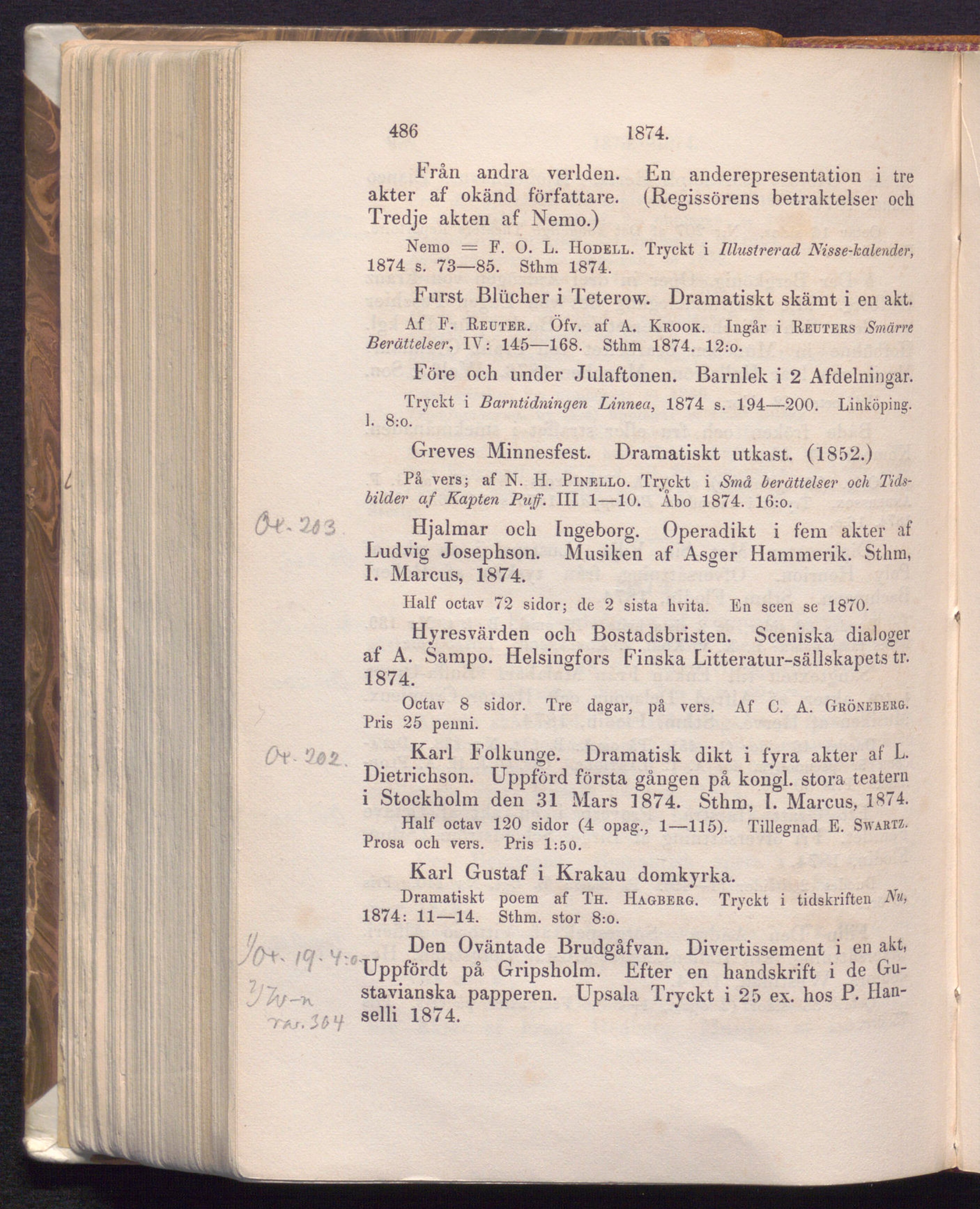 Half octav 72 sidor; de 2 sista livita. En scen se 1870.