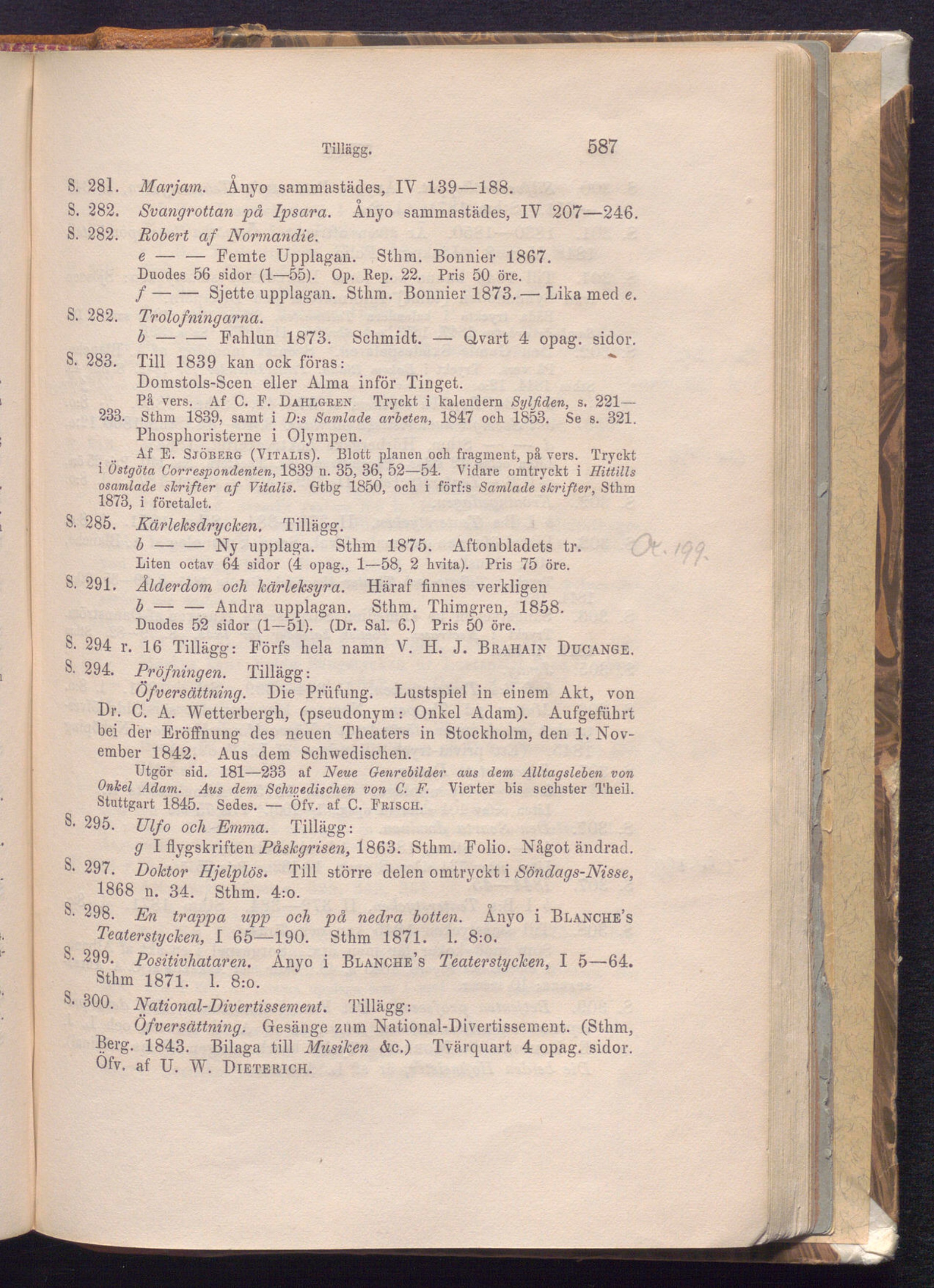 299. Positivhataren. Ånyo i Blanche’s Teaterstycken, I 5—64.