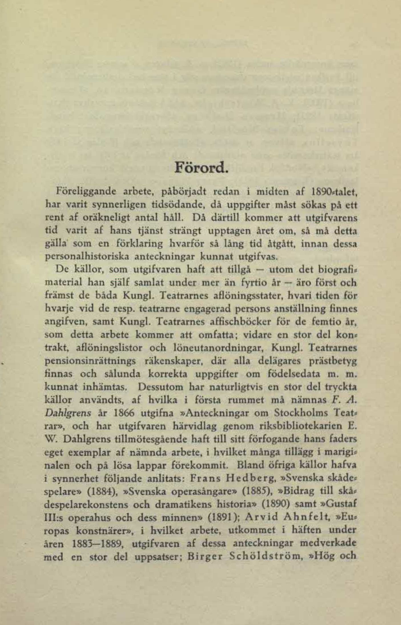 De källor, som utgifvaren haft att tillgi — utom det biografi»