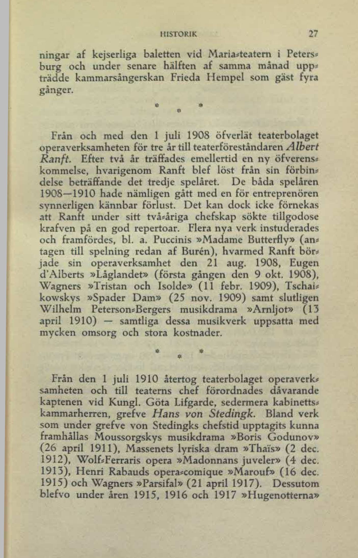 1915) och Wagners »Parsifal» (21 april 1917). Dessutom