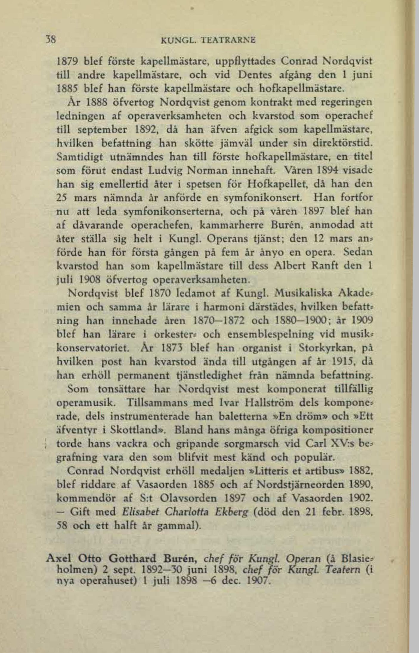 1879 blef förste kapellmästare, uppflyttades Conrad Nordqvist