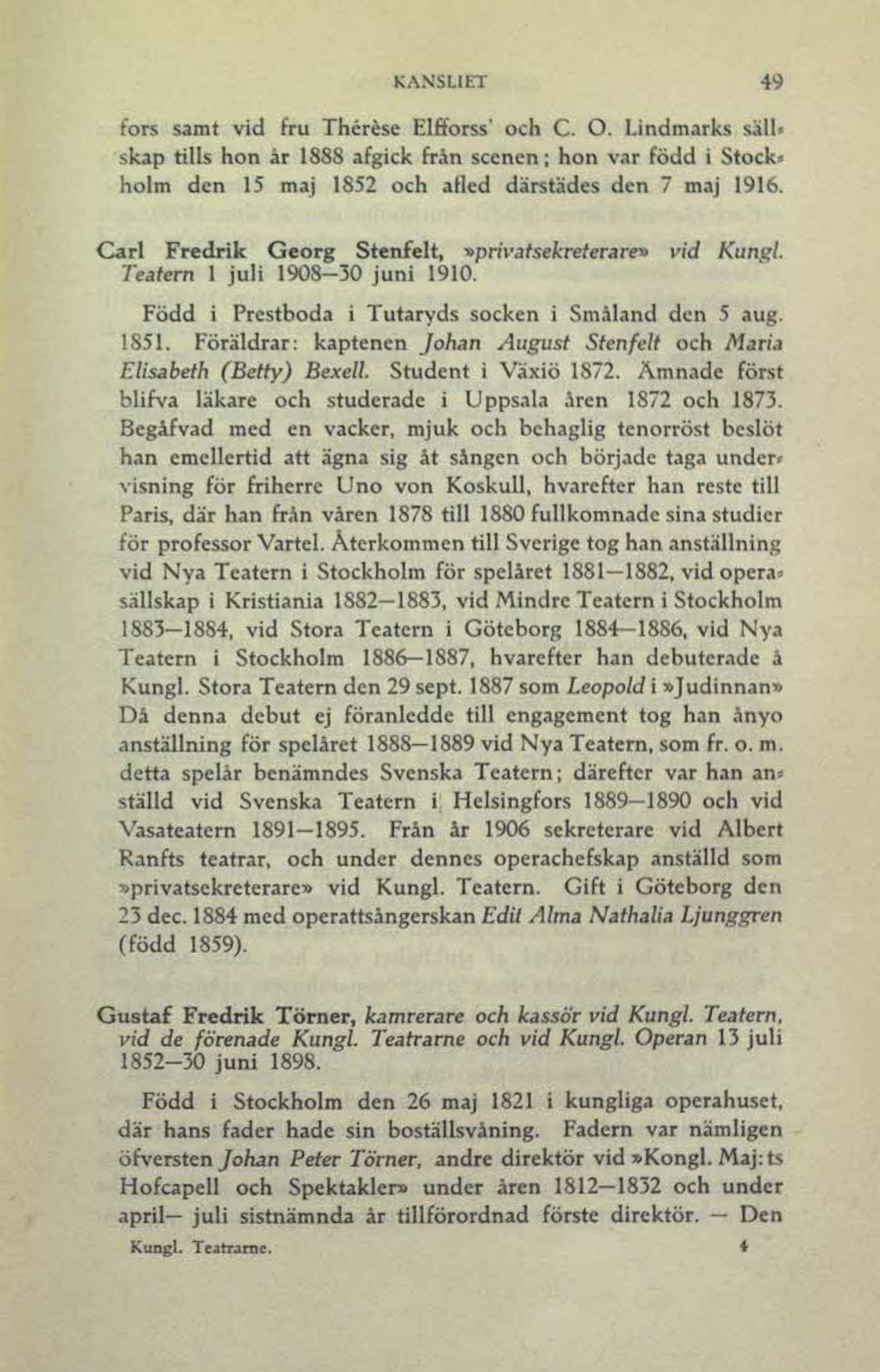 Vasateatern 1891-1895. Från år 1906 sekreterare vid Albert