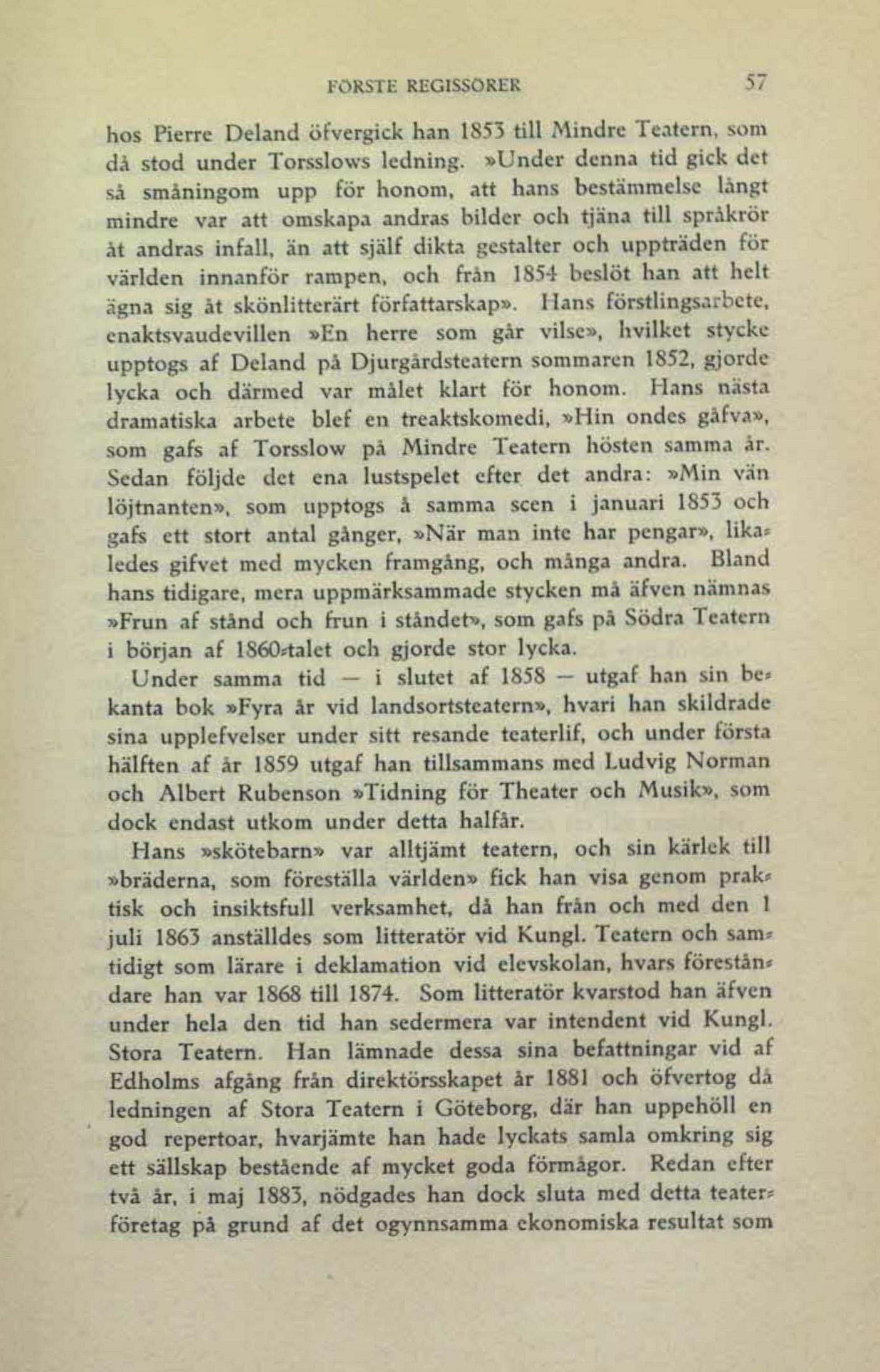 hos Pierre Deland öfvergick han 1853 till Mindre Teatern, som