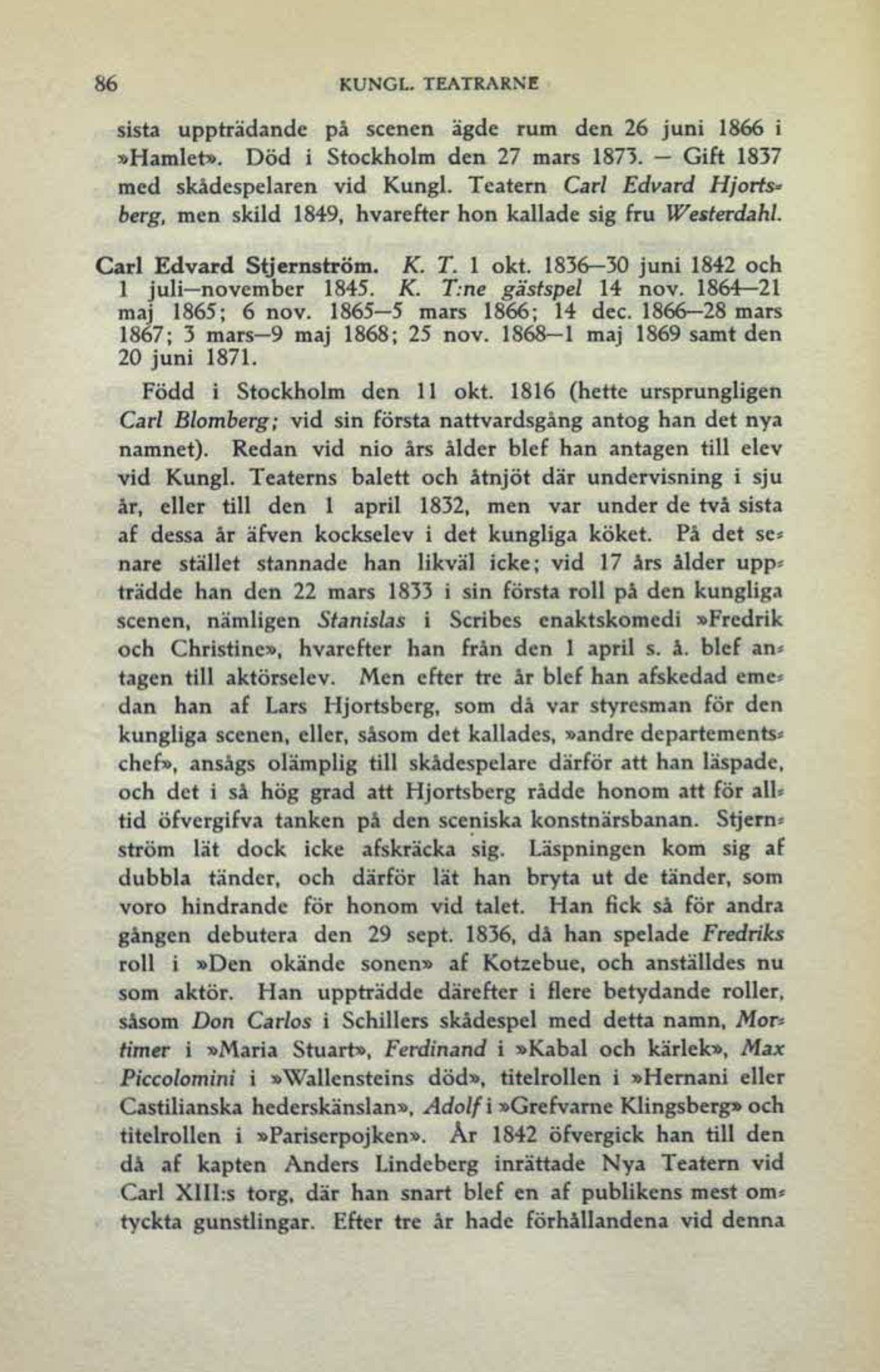 »Hamlet». Död i Stockholm den 27 mars 1873. - Gift 1837